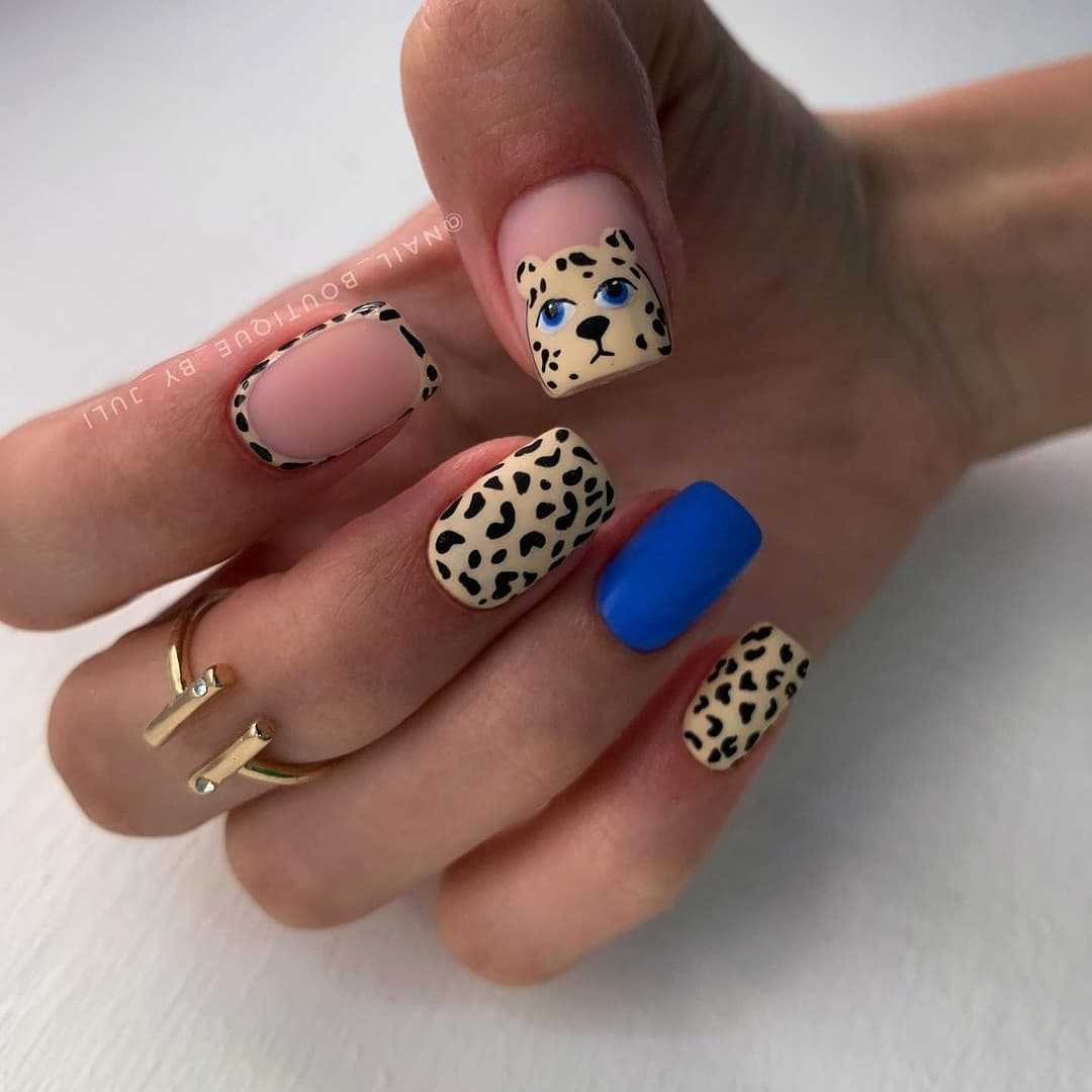 Красивые и элегантные дизайны французского 2022 года представлены в основных модных тенденциях нейл-арта. Одна из модных идей французского маникюра в этом году — лаконичные и минималистичные детали и элементы, основанные на естественных, геометрических и абстрактных узорах. Среди этих моделей — классический жакет с тигровым принтом на одном ногте.