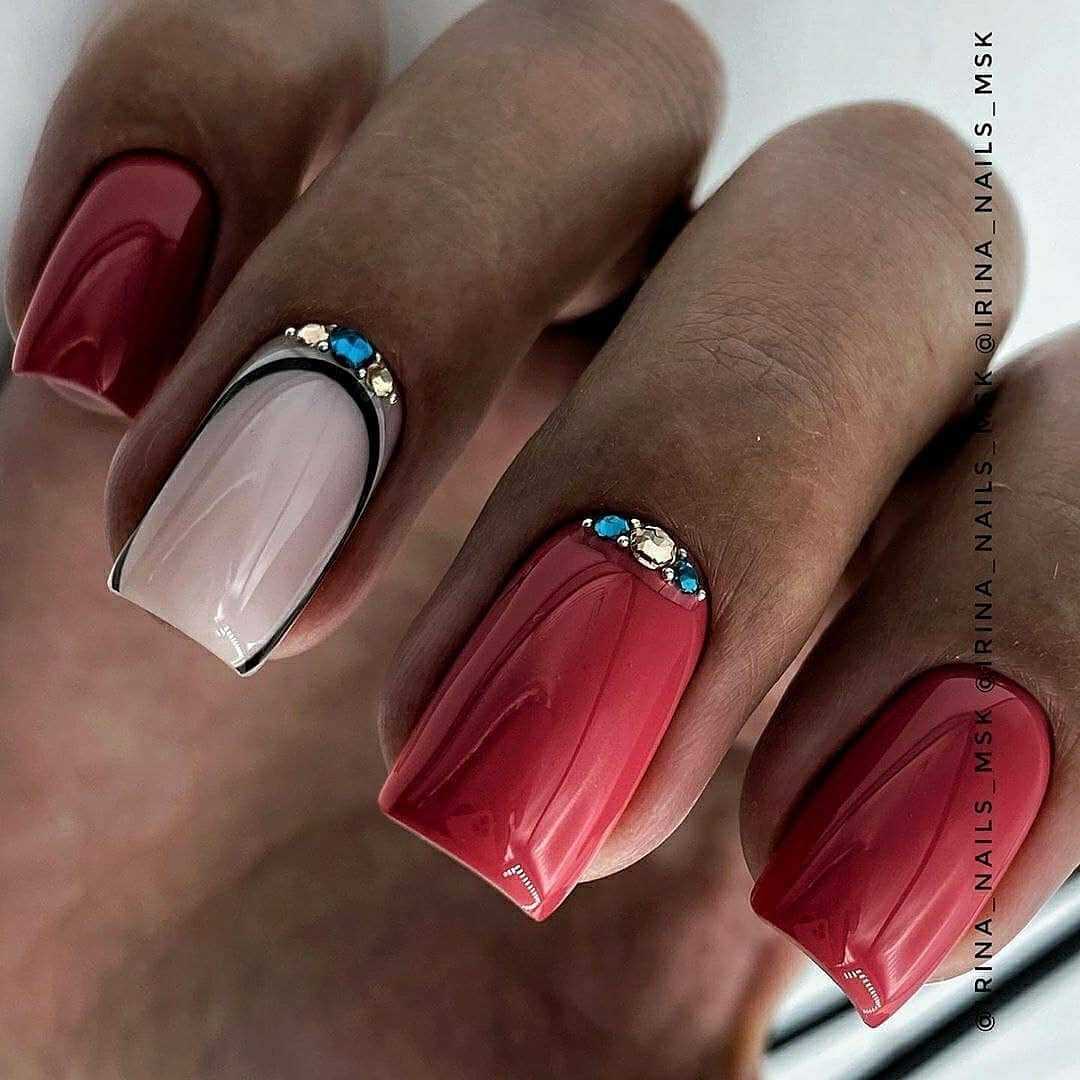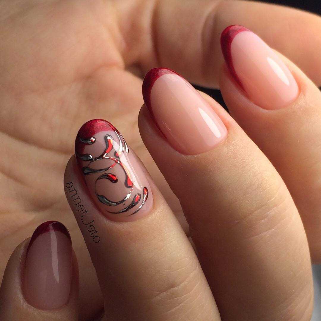 Остальные ногти можно покрыть классическими цветами: бордовым, розовым или бежевым.
