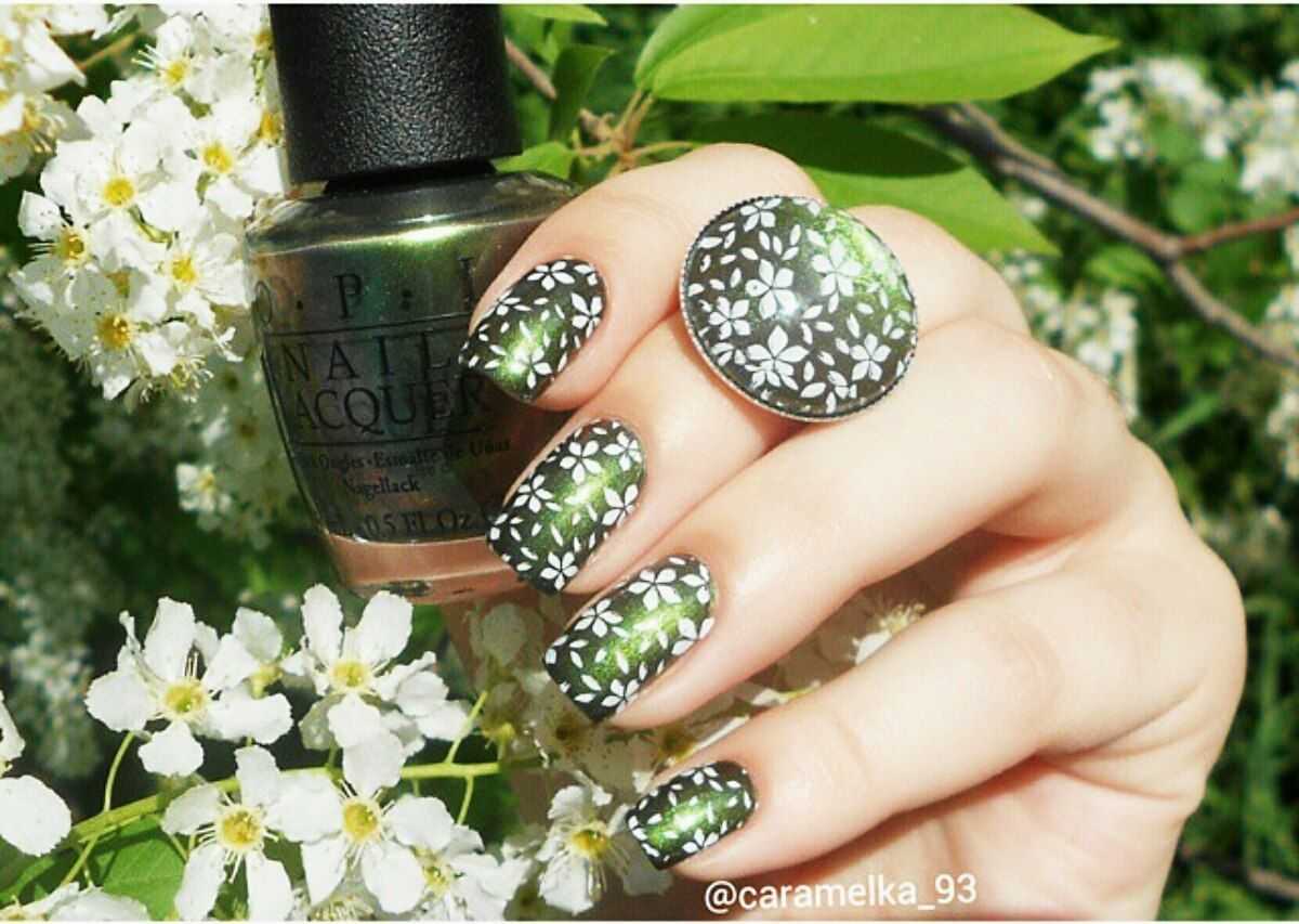 Широкая ногтевая пластина квадратной формы позволяет воплотить на себе даже самые сложные идеи. Прежде всего это растительные мотивы.