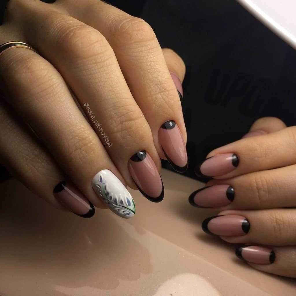 Естественные мотивы легко достижимы во французском дизайне со скромными сложными цветочными мотивами или отдельным отдельным цветочным мотивом. Естественность и естественность присуща мраморной технике в декоре нескольких ногтей от французского маникюра. В тренде также символические образы, абстракция и геометрия, которые отличаются сдержанностью и скромностью.
