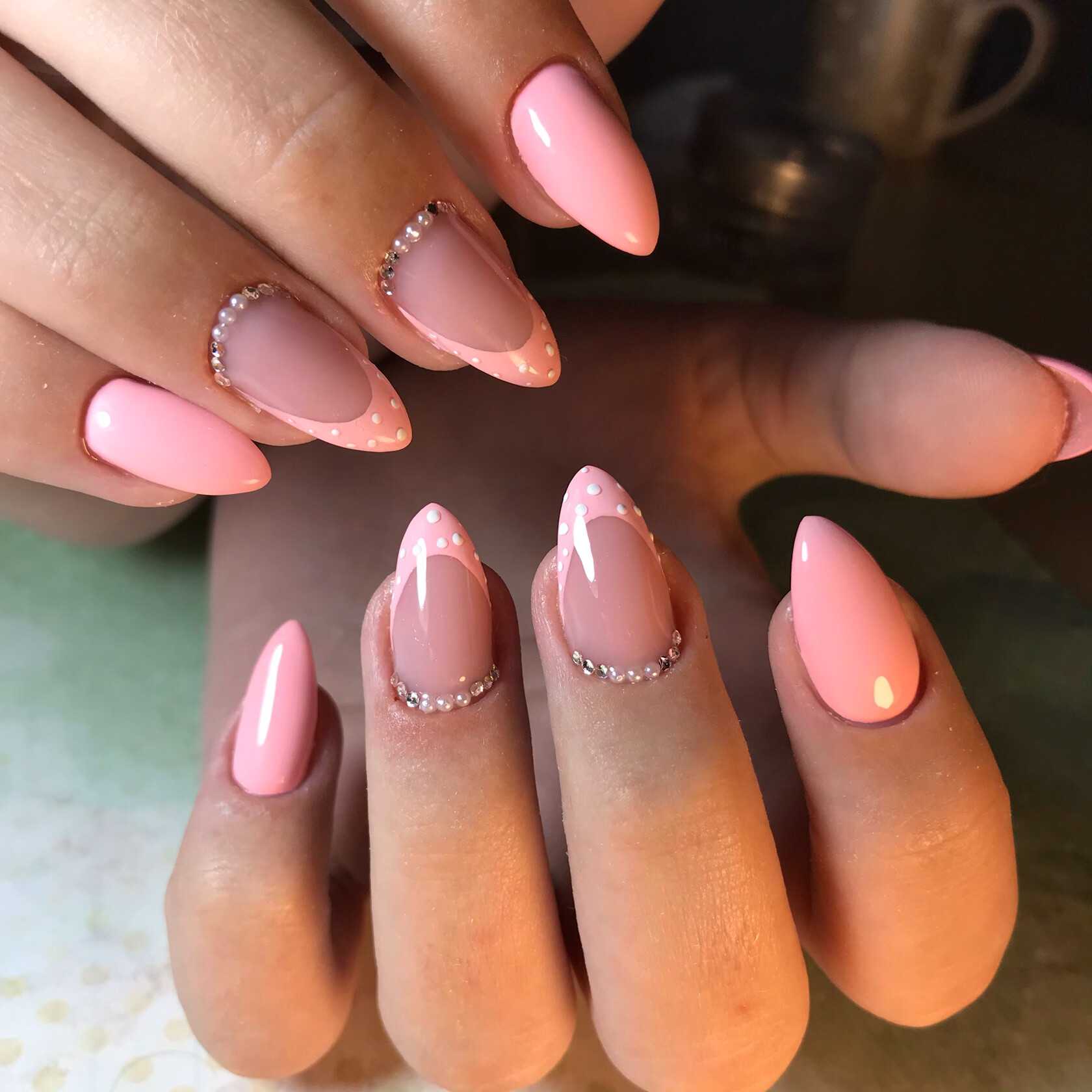 Ногти от природы не могут обладать острым кончиком, зато они нередко бывают закруглёнными. Внешне они более всего напоминает миндаль, отсюда соответствующее название – миндалевидные. Стоит отметить, что натуральные и салонные миндалевидные ноготки очень сильно отличаются между собой. Первые имеют менее острый кончик.