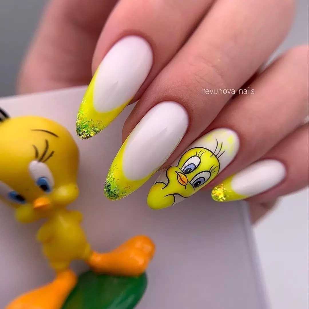 Рисунки на нарощенных ногтях – это творческая деятельность мастера маникюра. Какие только картины не оживают на нарощенных женских ногтях. В 2018 году можно увидеть и интересные переплетения линий, и забавных зверушек, и сказочные цветы. От «набитой» руки и профессионализма мастера зависит художественное исполнения орнамента, его оригинальность и неповторимость. Великолепные вариации дизайна на нарощенных ногтях предлагает известная француженка с ник-неймом TARTOFRAISES, который теперь является официальным брендом. Еще один специалист в области моделирования и дизайна – это Елена Мальцева, которое воплощает в жизнь самые невозможные орнаменты и сочетания. Экспериментальный стилист женского маникюра – Александра Лебедева, которая творит чудеса с нарощенными ногтями. Создайте свое настроение с помощью нарощенных ногтей с оригинальным рисунком! А креативные идеи известных мастеров нейл-арта помогут вам с этим.