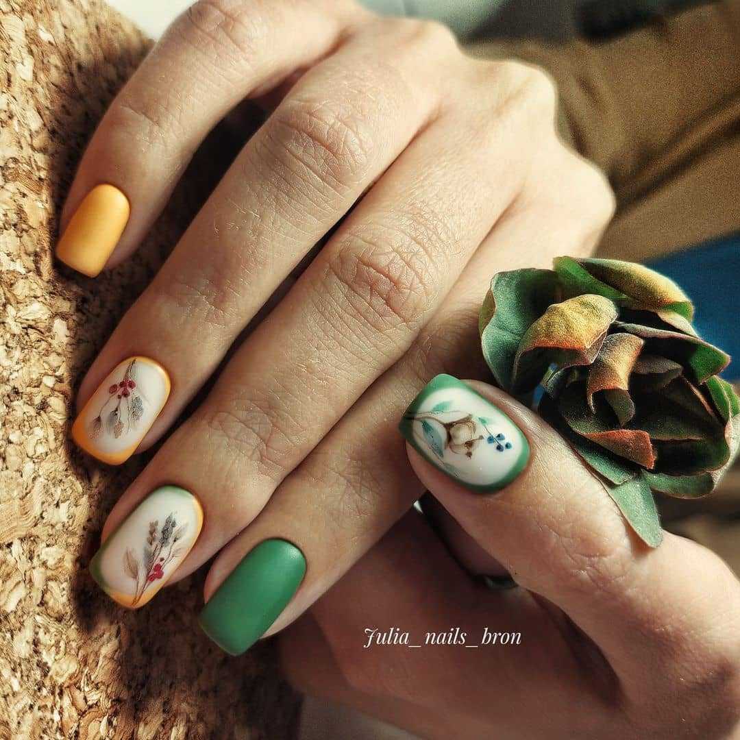 Идеи осеннего маникюра гель-лаком включают в себя: