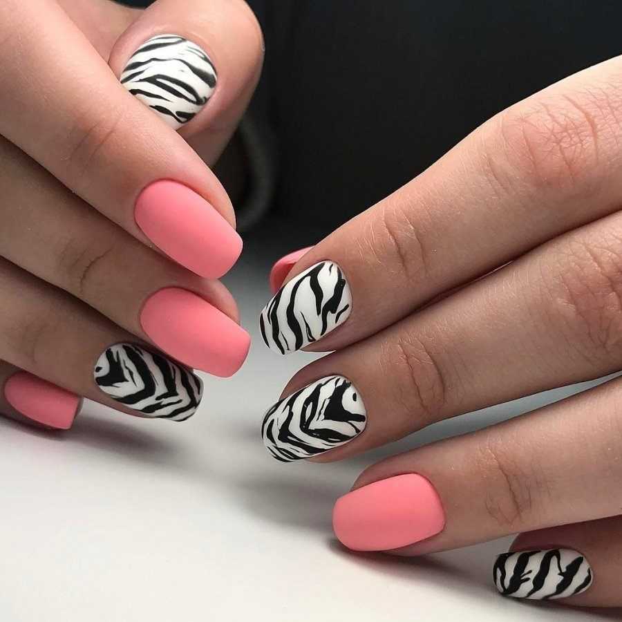 Более привлекательно смотрится вариант радуги — когда радуга в нюдовых оттенках набивается 1-2 ногтями. Хорошо сочетается с объемными аппликациями и узорами в виде бабочек, разделенных на 2 ноготка. Подходящий вариант — черно-белая паутина.