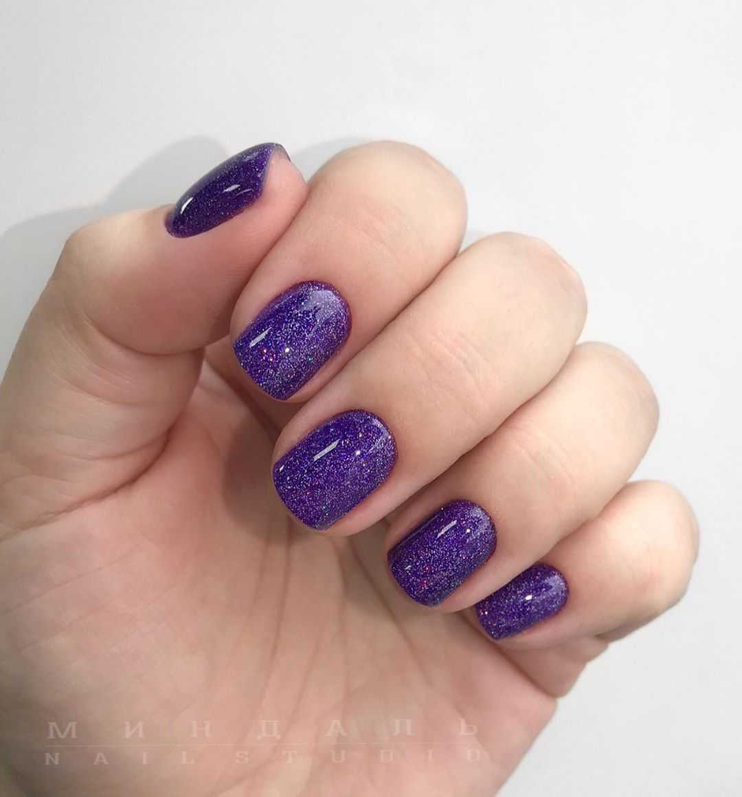 Маникюр на короткие ногти гель лаком с втиркой и блёстками