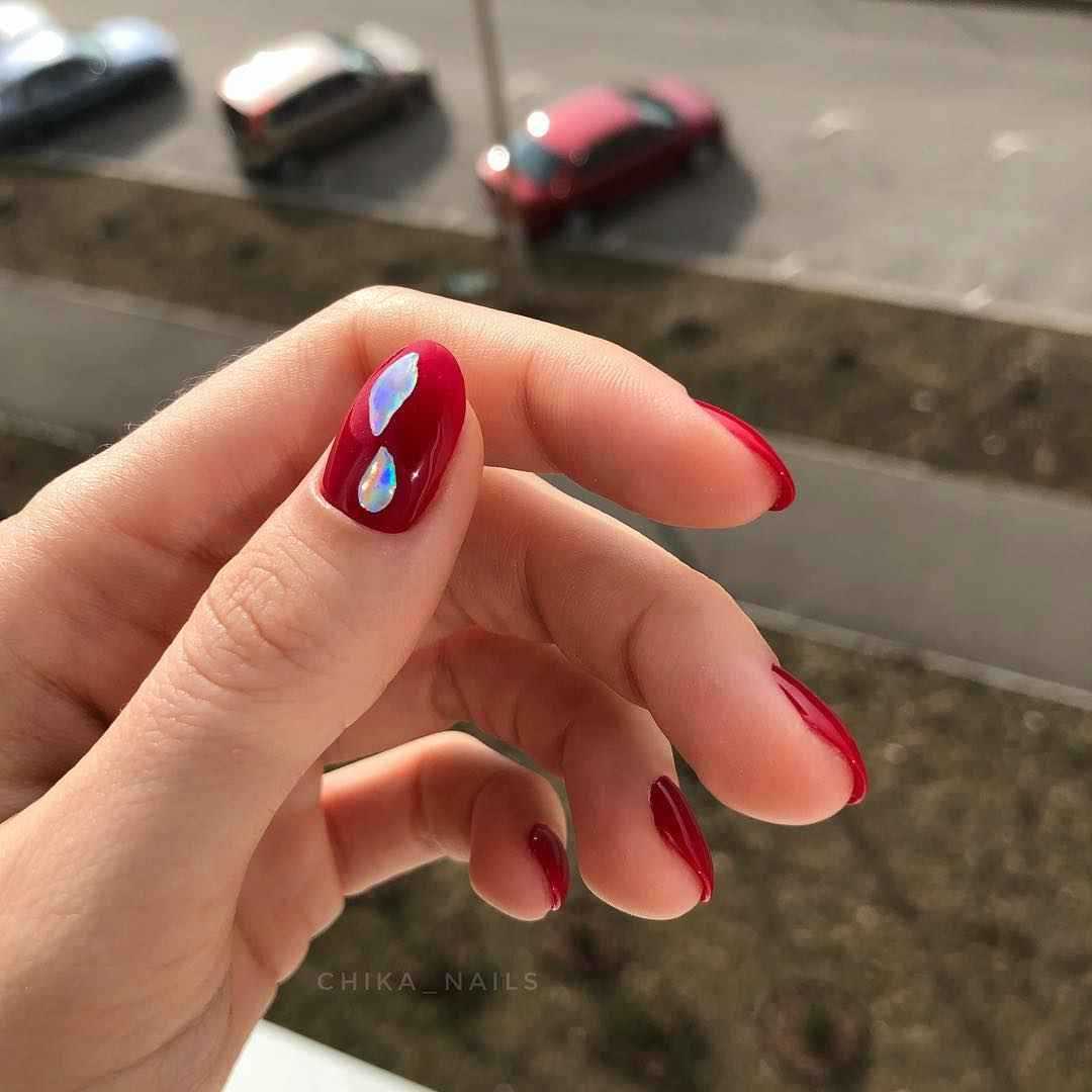 Однако, если есть желание выделиться и поэкспериментировать со стилем маникюра, достаточно приклеить на один-два ноготка несколько небольших кристаллов, чтобы добавить образу изюминки и очарования.