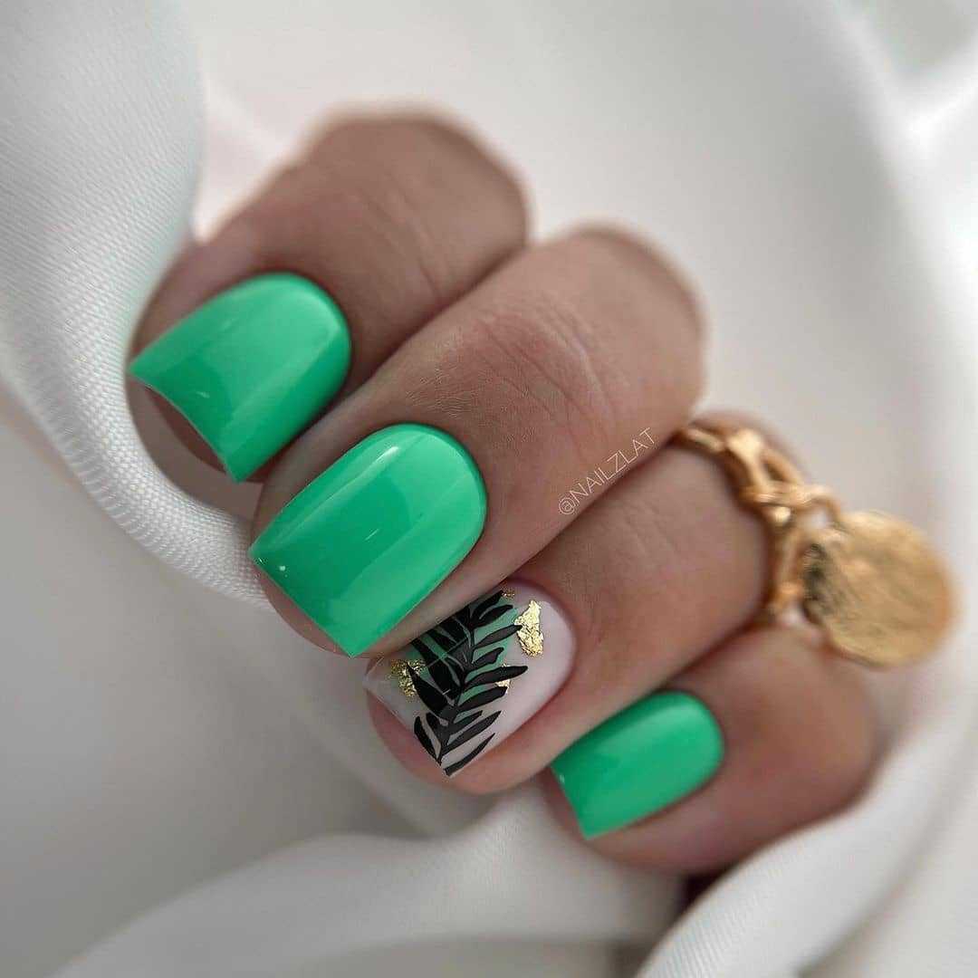 Зеленый цвет имеет очень богатую палитру оттенков лаков и каждый из них выглядит потрясающе, так что можете смело выбирать зеленый маникюр и комбинировать его с камифубуки, втиркой, камушками или блестками.
