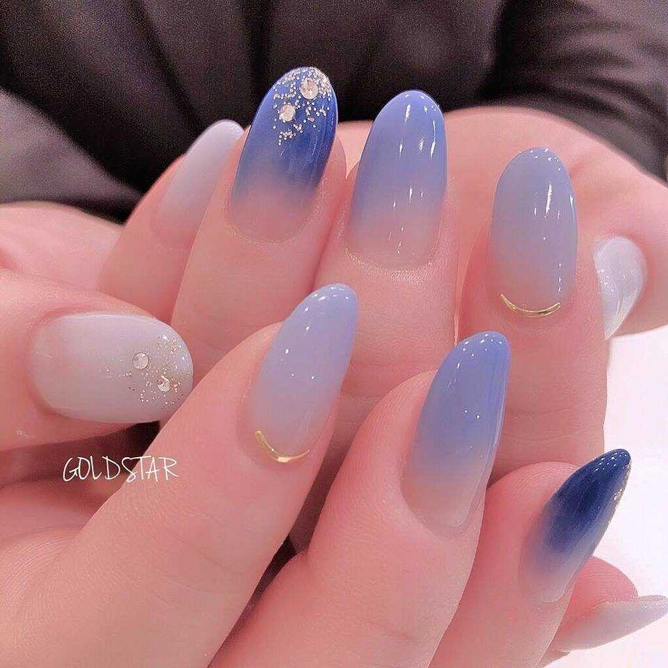 Глубокий насыщенный синий цвет выбран институтом цвета Pantone одним из главных оттенков 2020 года. И естественно маникюрные мастера не могли пройти мимо этого цвета.