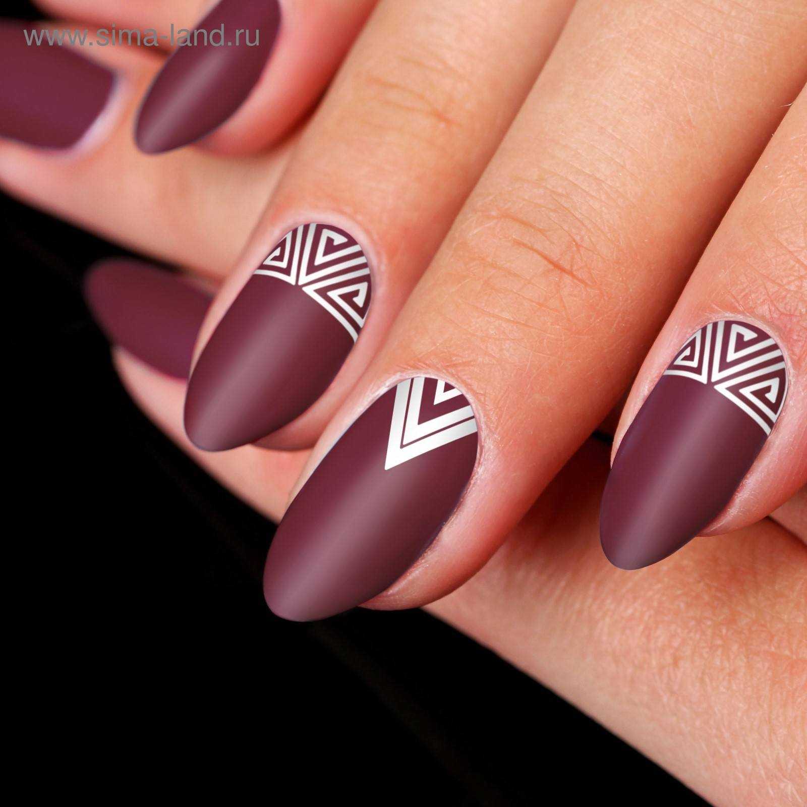 Сочетание в одном маникюре 2 трендов – матового покрытия и геометрических узоров всегда отличная идея для повседневного элегантного маникюра. Особенно популярен сегодня белый, черный и красный матовый топ. Эти тона прекрасно подходят для ногтей любой длины и формы, и всегда являются их украшением.
