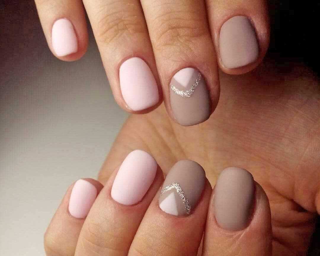 Для создания маникюра с треугольниками используйте любое покрытие: гель-лак, шеллак, обычные лаки. Что касается текстуры, то оригинально выглядят глянцевое и матовое покрытие. Выбор покрытия зависит от основного оттенка. К примеру, матовый гель-лак отлично смотрится в темных тонах.