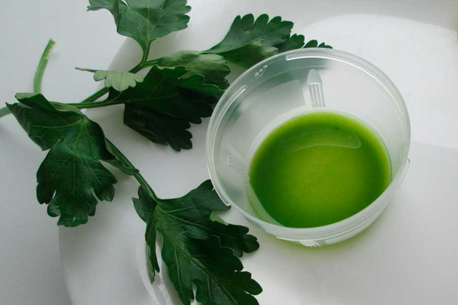 Дома всего за сутки наши мамы и бабушки отбеливали кожу простой петрушкой. Такая зелень не содержит ничего опасного для эпидермиса. Питает его полезными витаминами и минералами. Используют петрушку в виде косметического льда, тоников, отваров, масок.