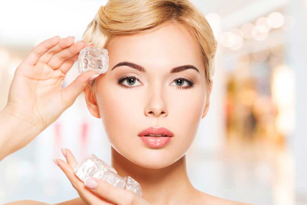 В жару тонизирование утром лучше проводить с использованием кубиков льда.