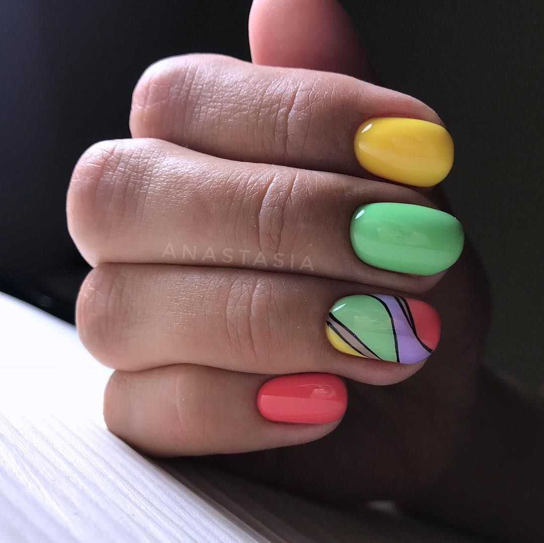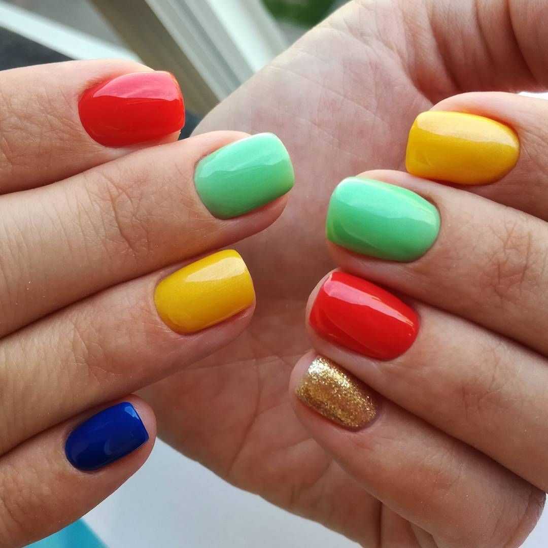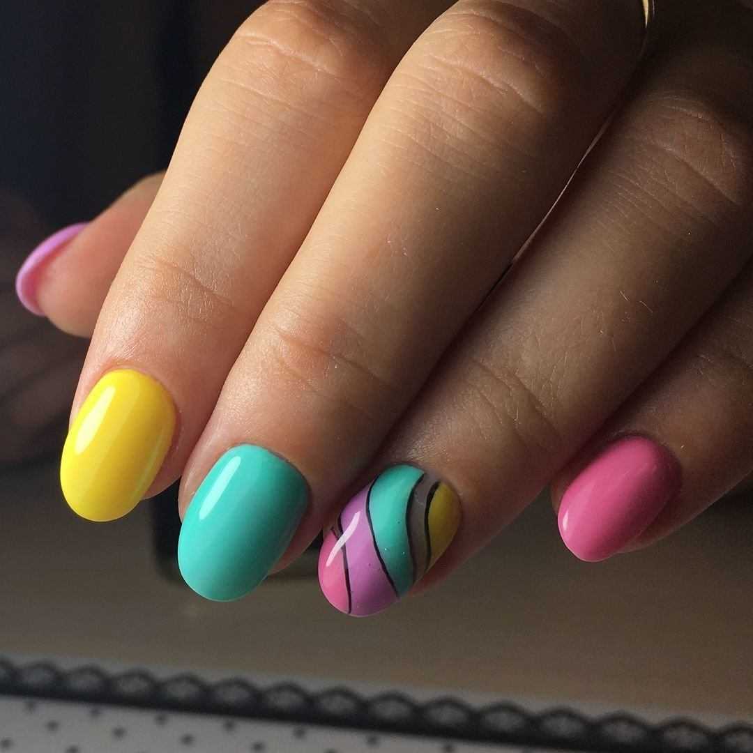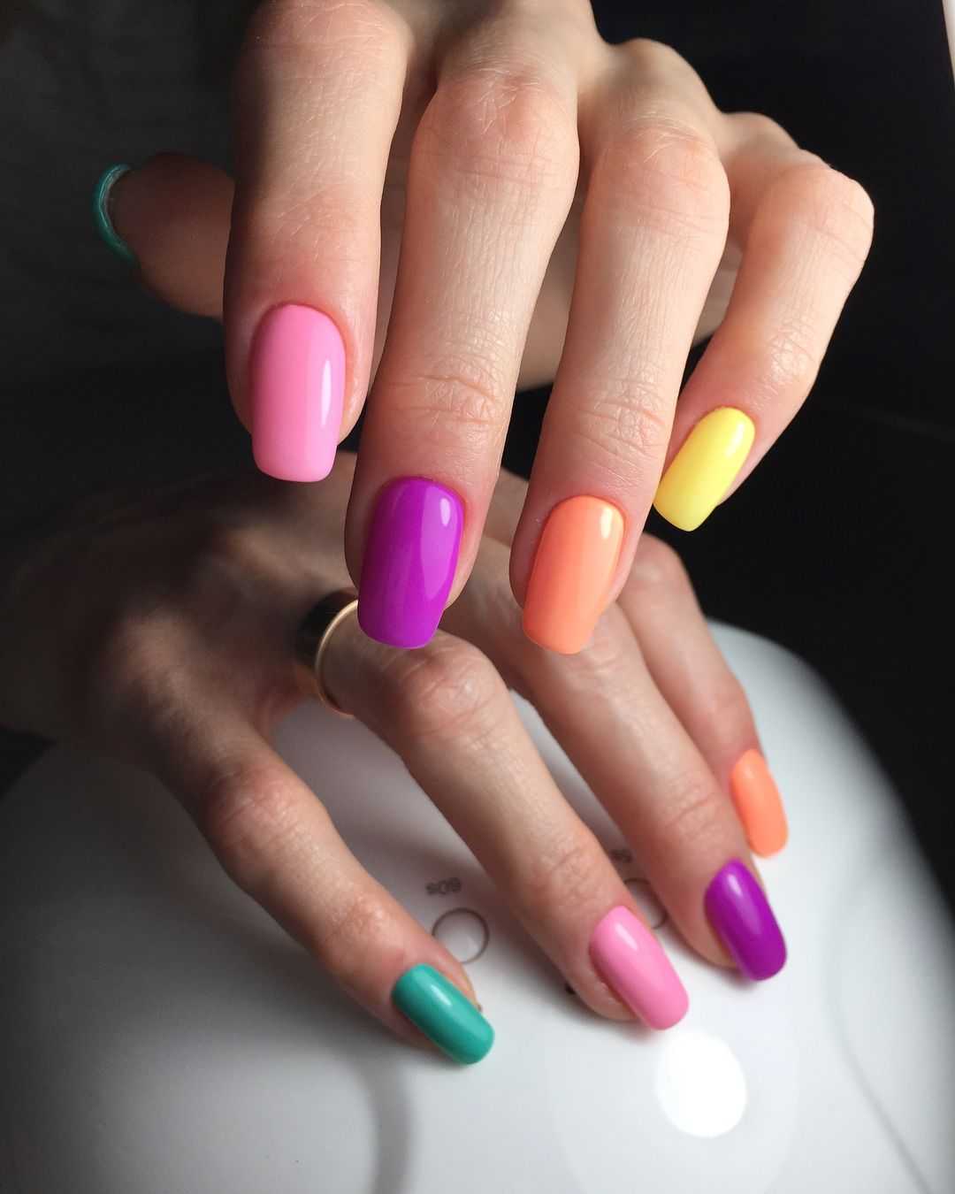 Цветные нейл-арты – настоящая находка для девушек, которые не прочь поэкспериментировать с интересным декором. Маникюр в ярких насыщенных или, наоборот, сдержанных оттенках отлично впишется в летний образ, который чаще всего изобилует светлыми оттенками.