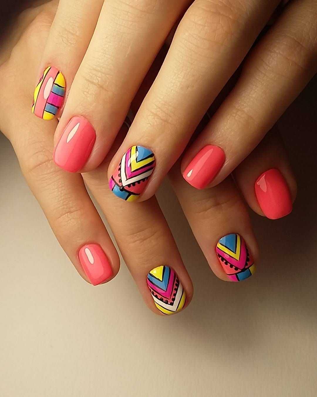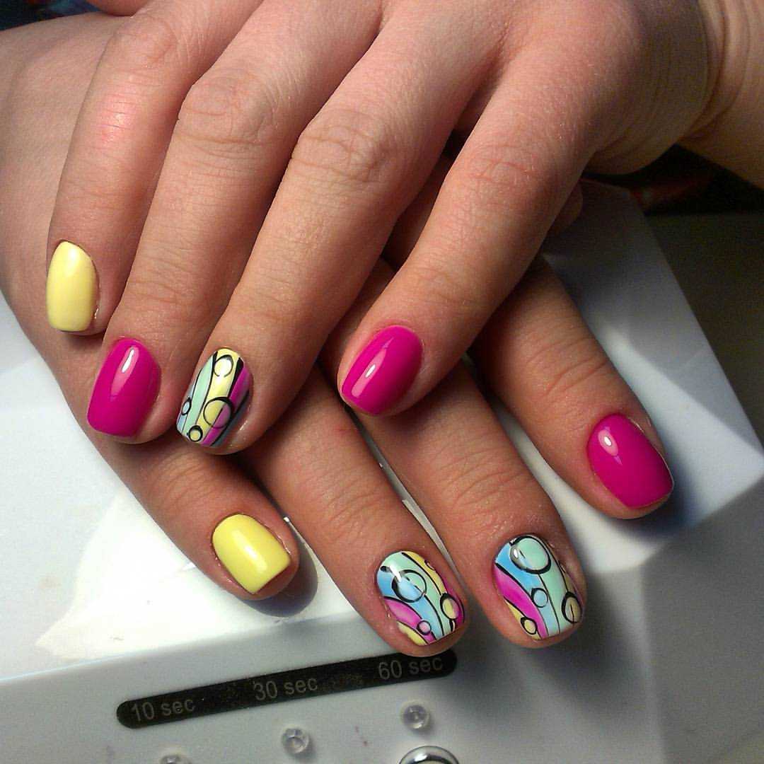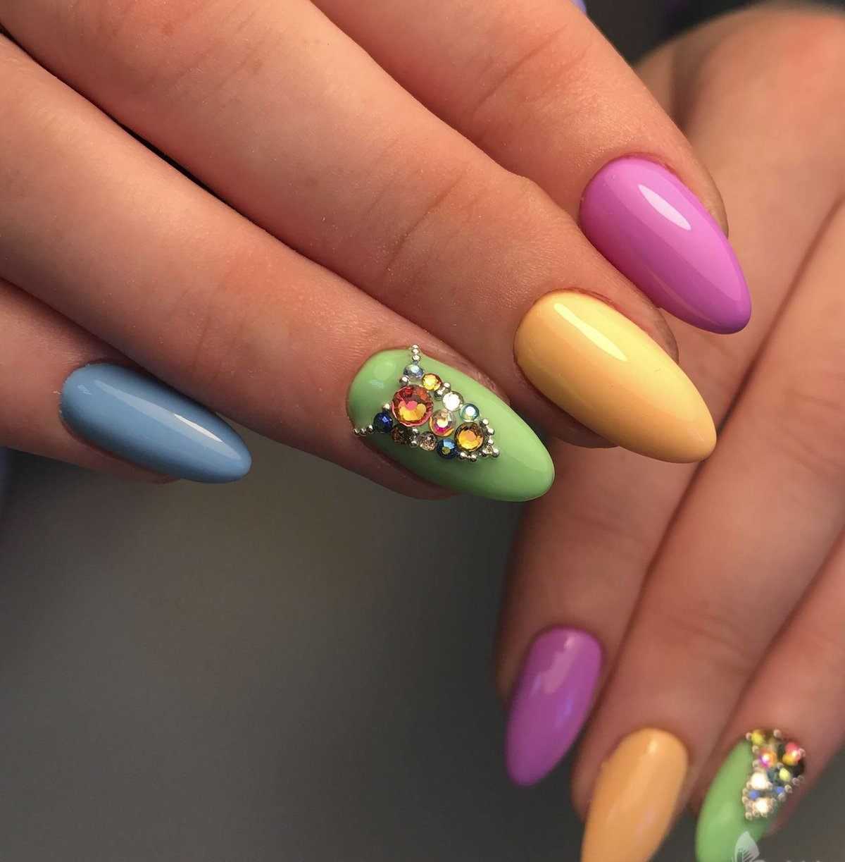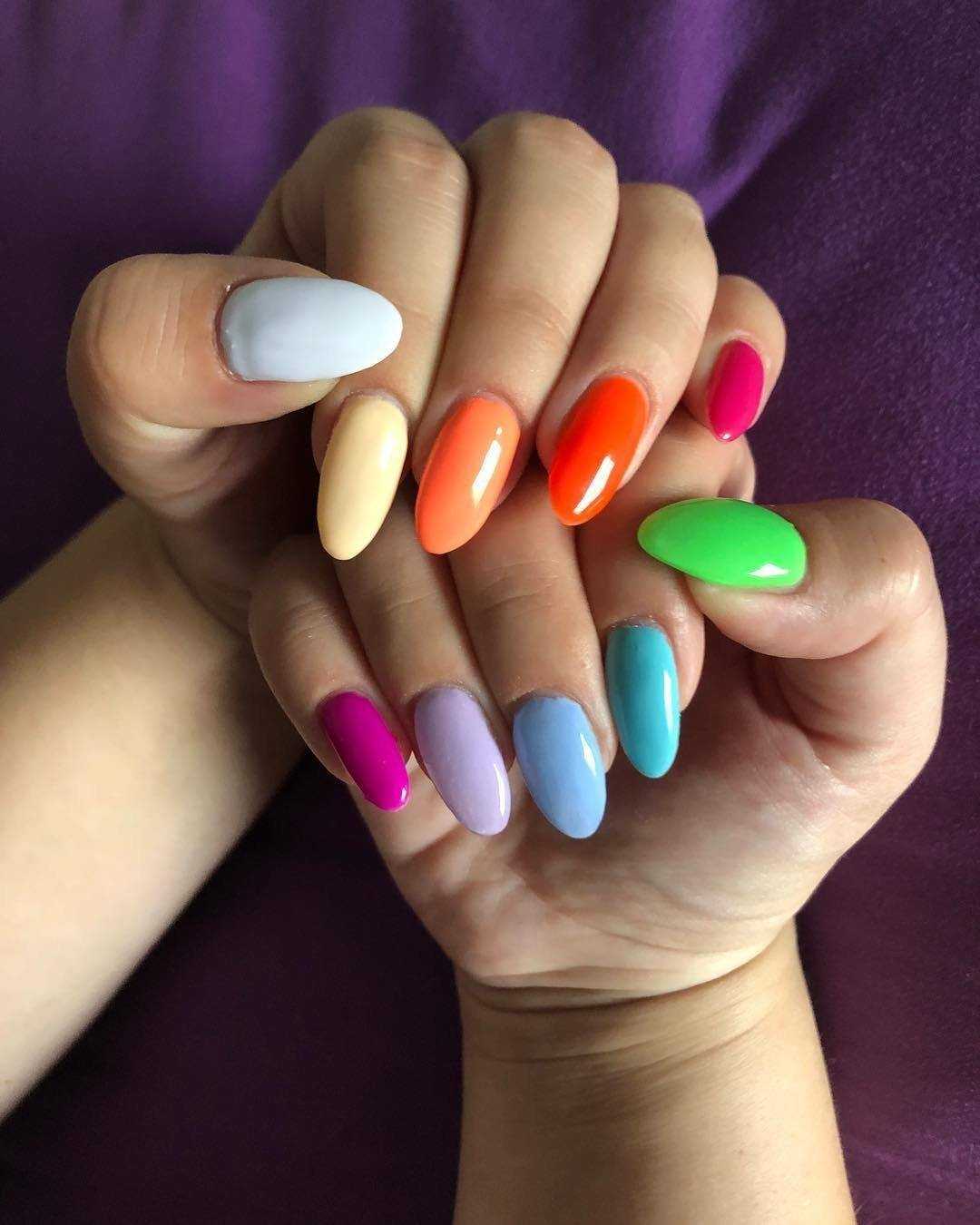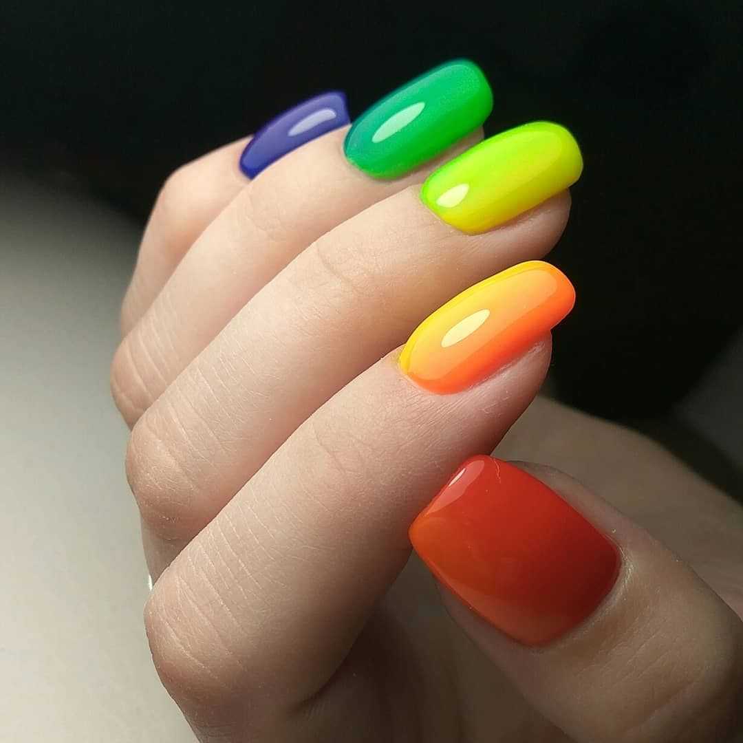 Цветные нейл-арты – настоящая находка для девушек, которые не прочь поэкспериментировать с интересным декором. Маникюр в ярких насыщенных или, наоборот, сдержанных оттенках отлично впишется в летний образ, который чаще всего изобилует светлыми оттенками.