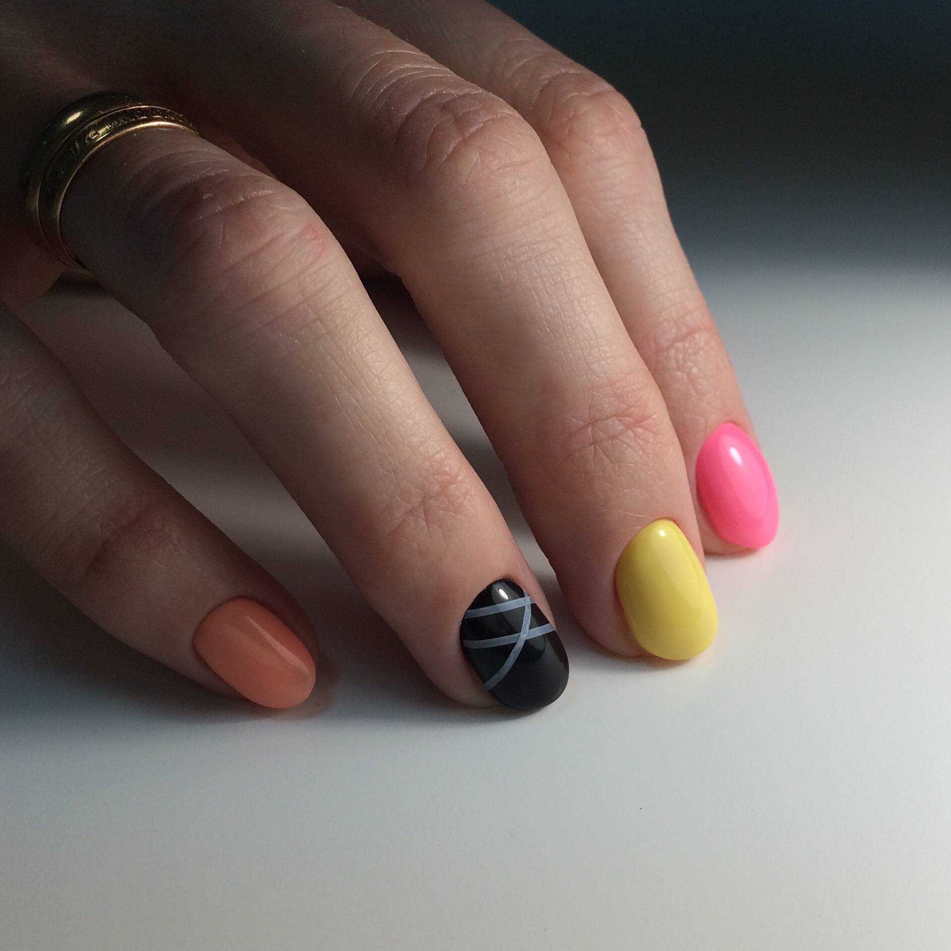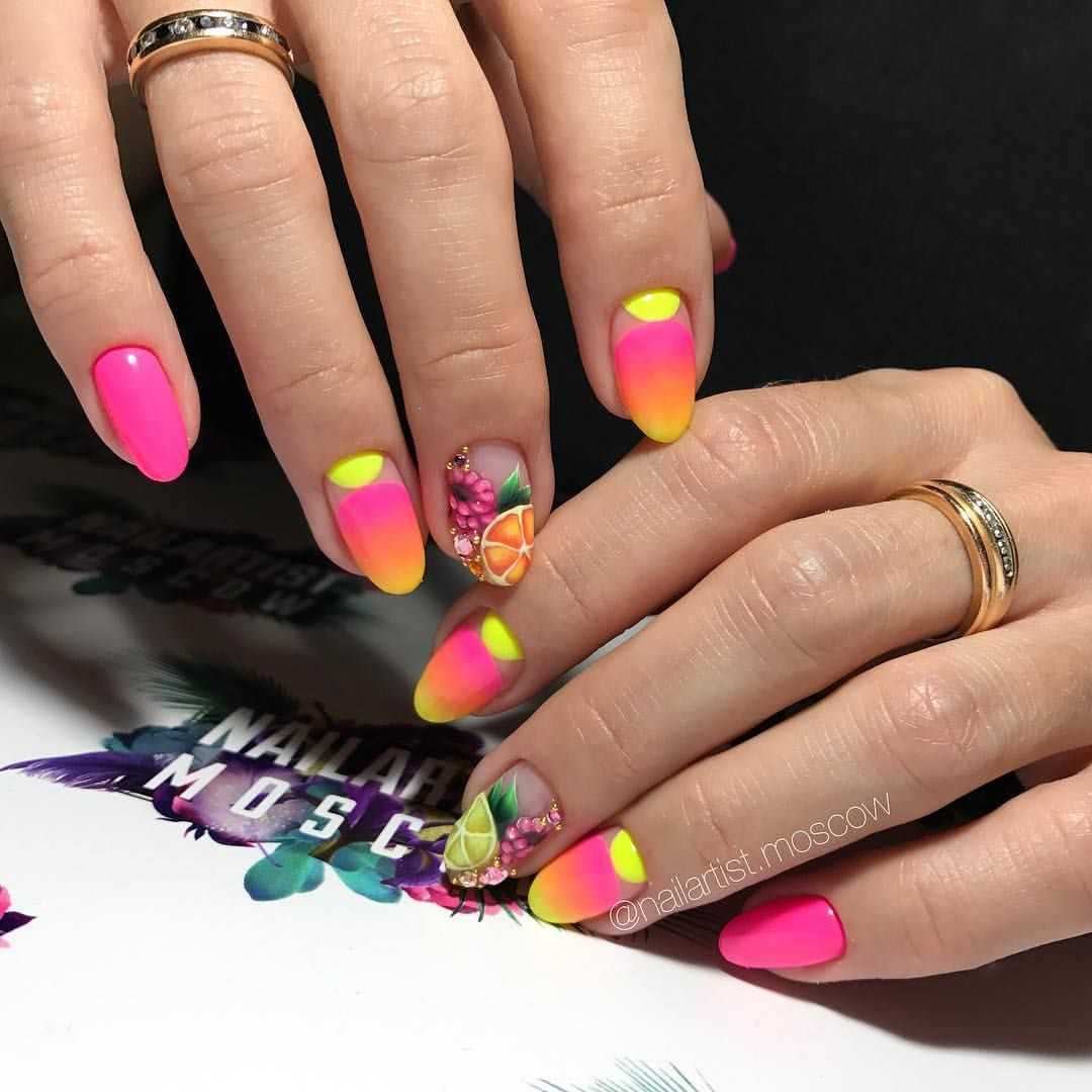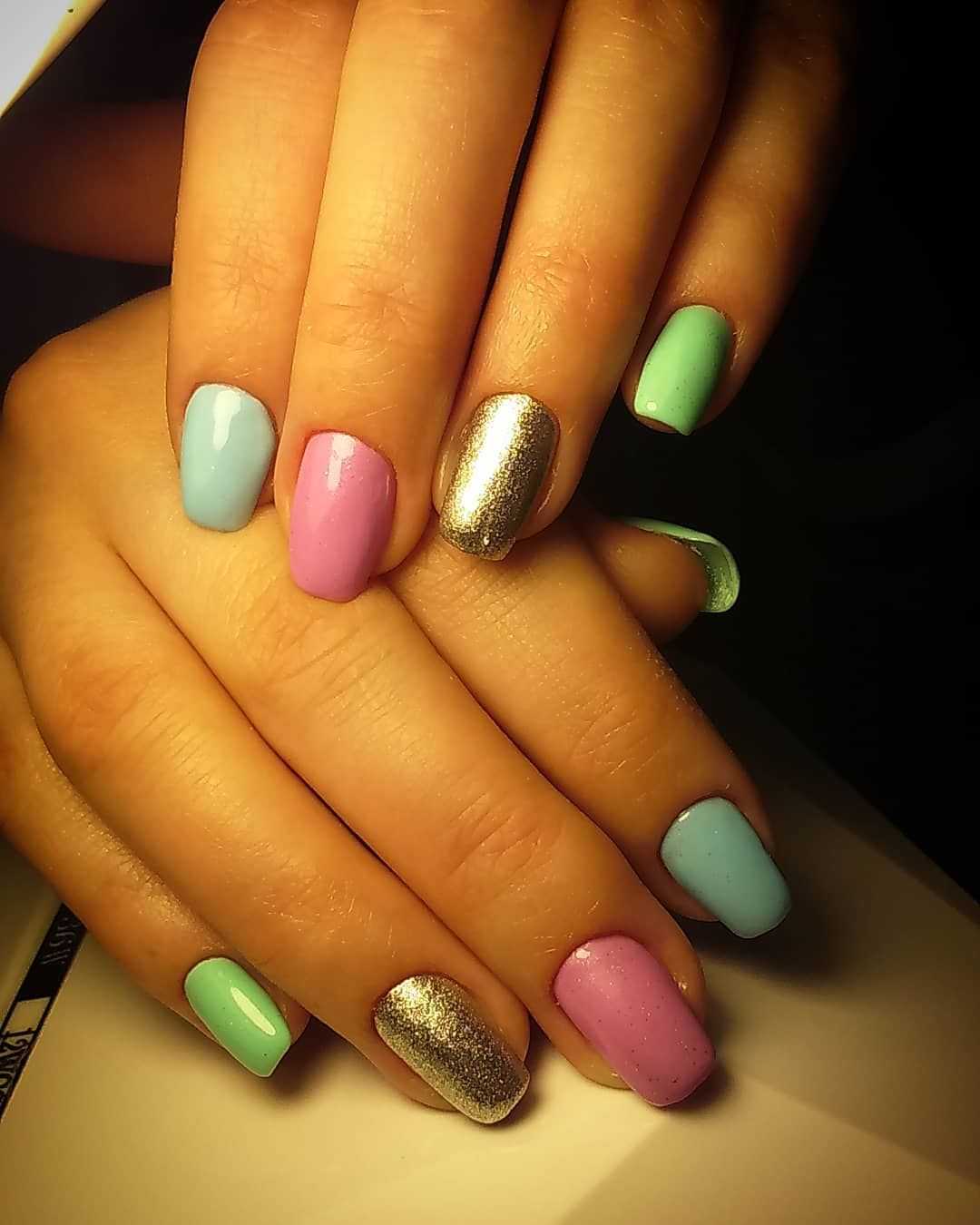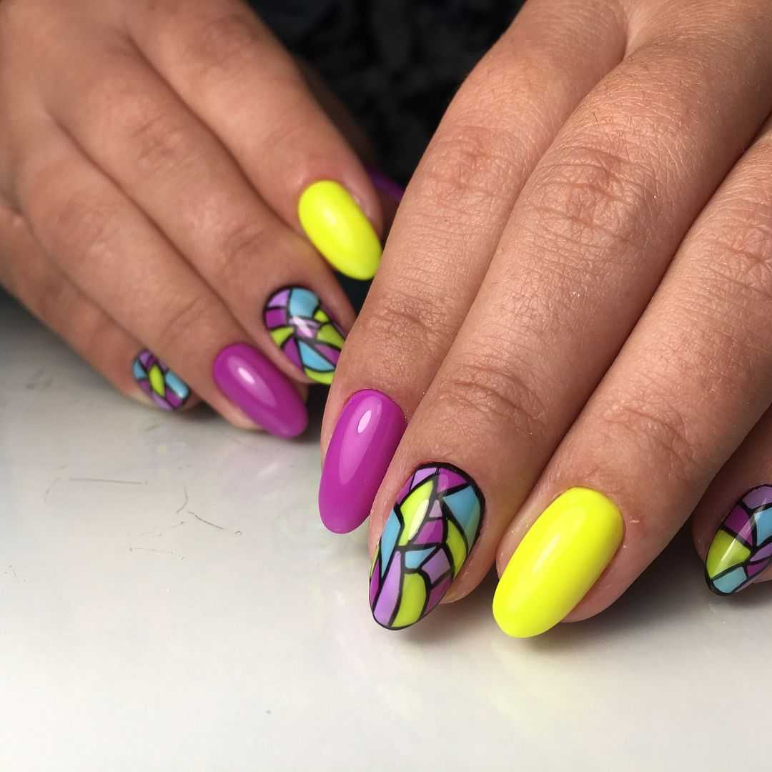 Цветные нейл-арты – настоящая находка для девушек, которые не прочь поэкспериментировать с интересным декором. Маникюр в ярких насыщенных или, наоборот, сдержанных оттенках отлично впишется в летний образ, который чаще всего изобилует светлыми оттенками.