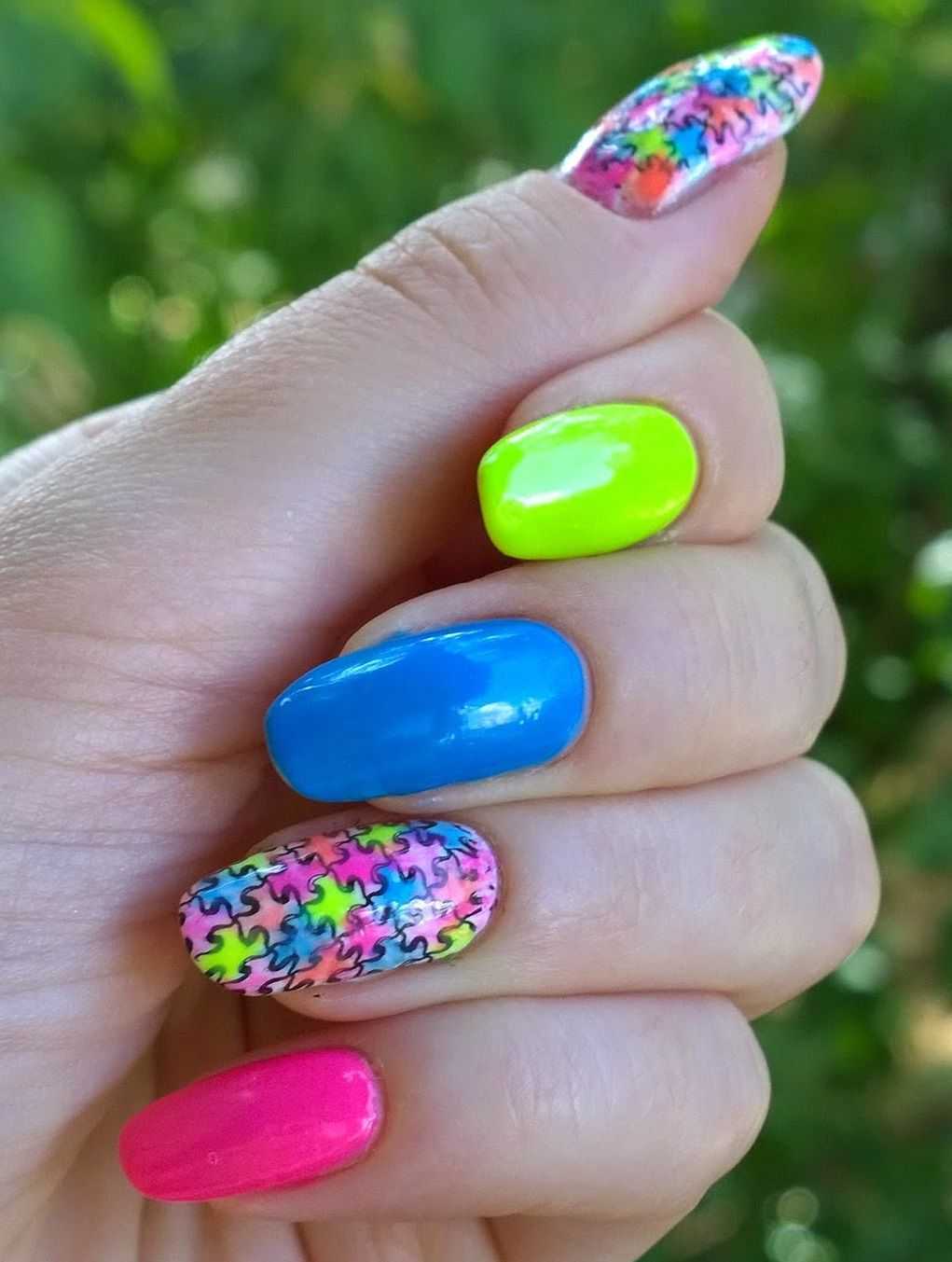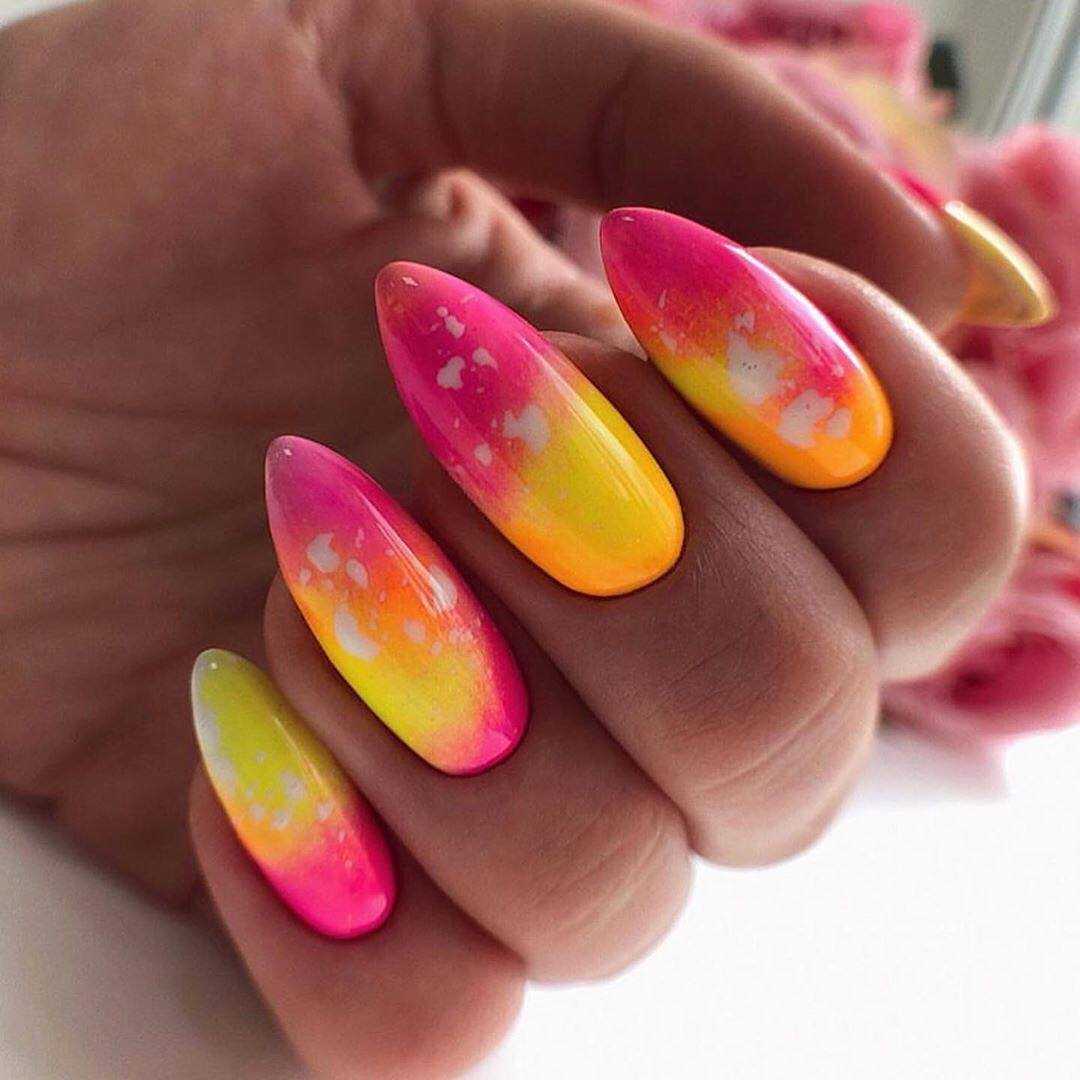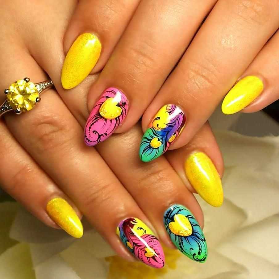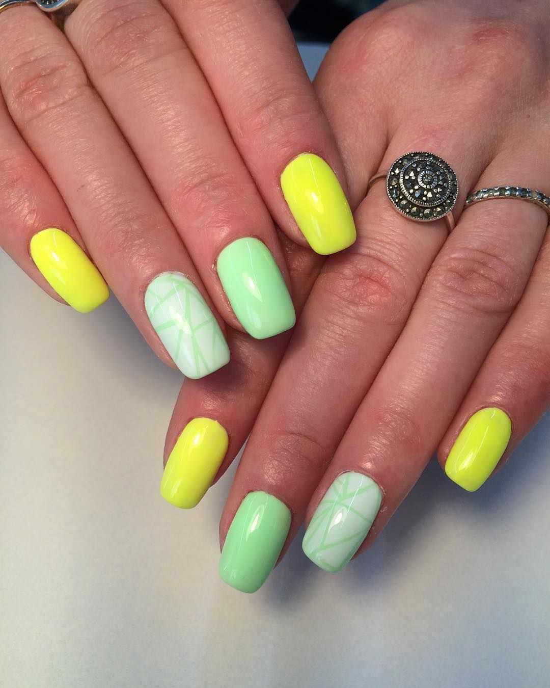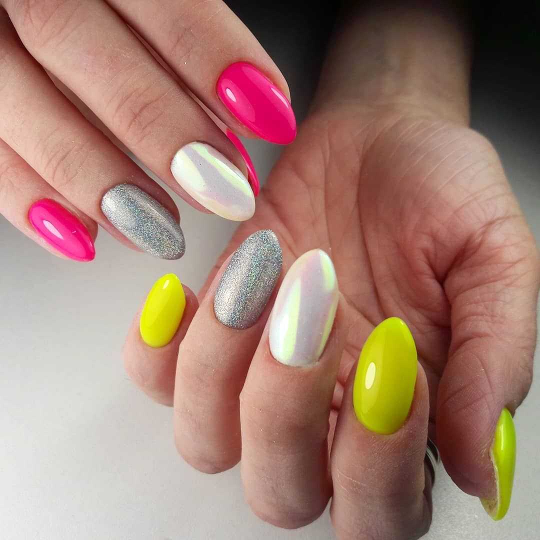 Цветные нейл-арты – настоящая находка для девушек, которые не прочь поэкспериментировать с интересным декором. Маникюр в ярких насыщенных или, наоборот, сдержанных оттенках отлично впишется в летний образ, который чаще всего изобилует светлыми оттенками.