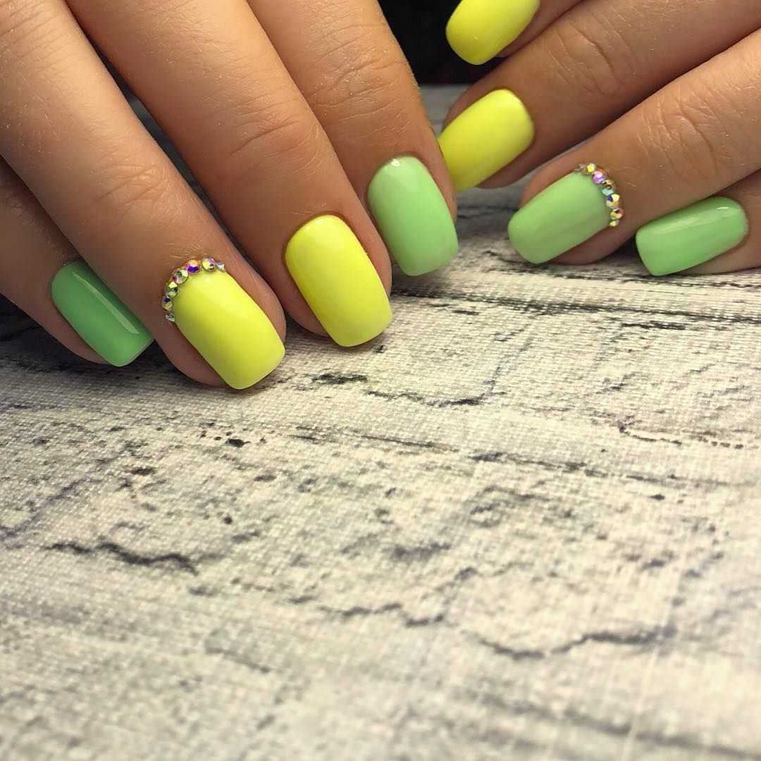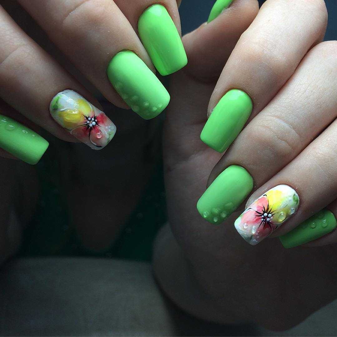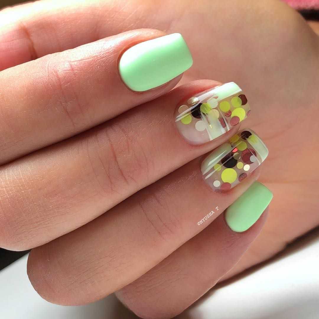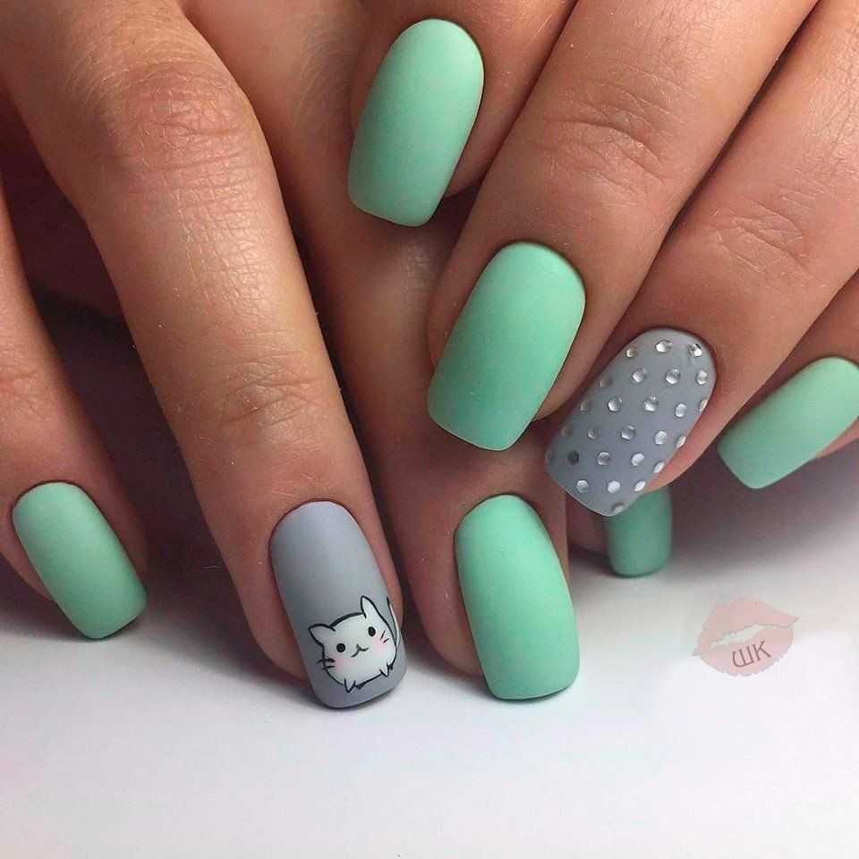 Что касается цветного маникюра, то матовость ему только к лицу. Даже такие сочные оттенки как лимонный, лайм, бирюзовый, оранжевый можно выполнить в матовой текстуре. В тренде однотонное покрытие цветными гель-лаками, разноцветный маникюр, маникюр «разные ручки».