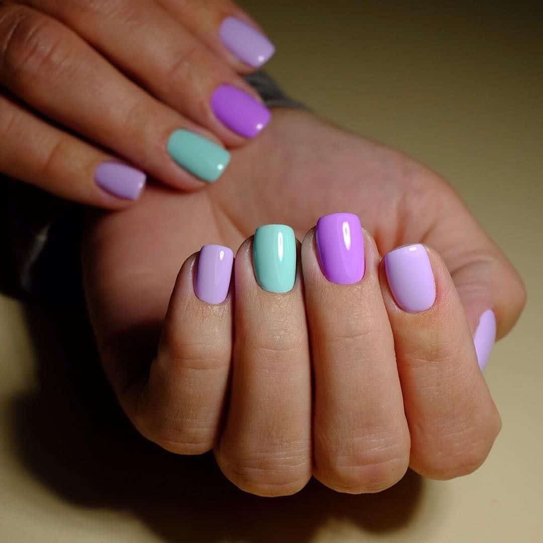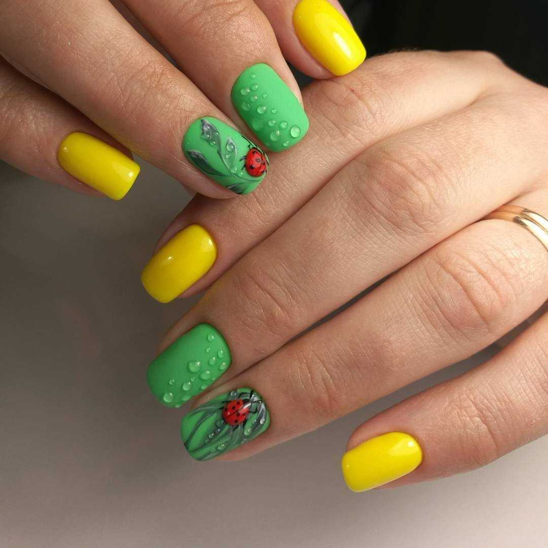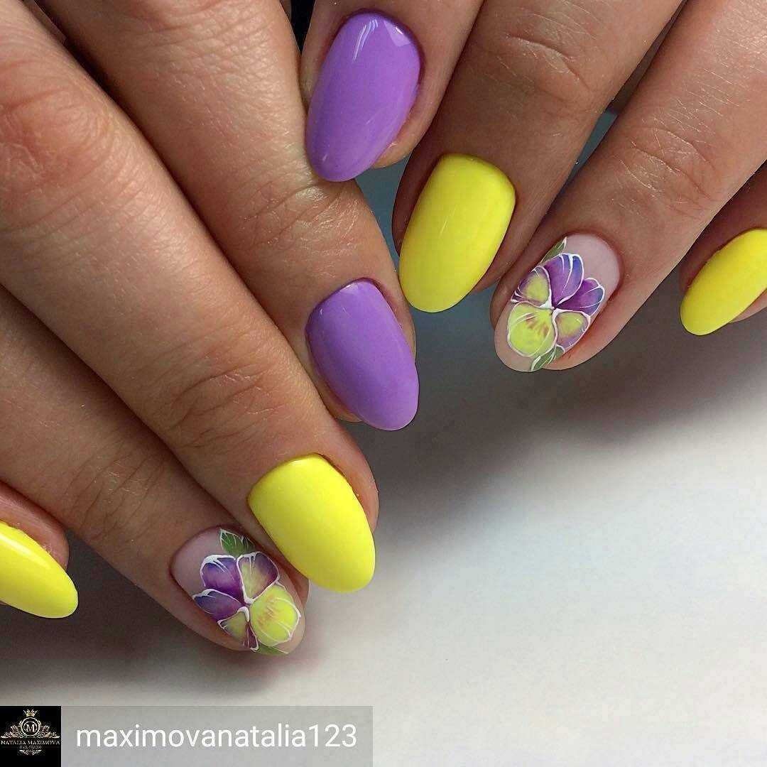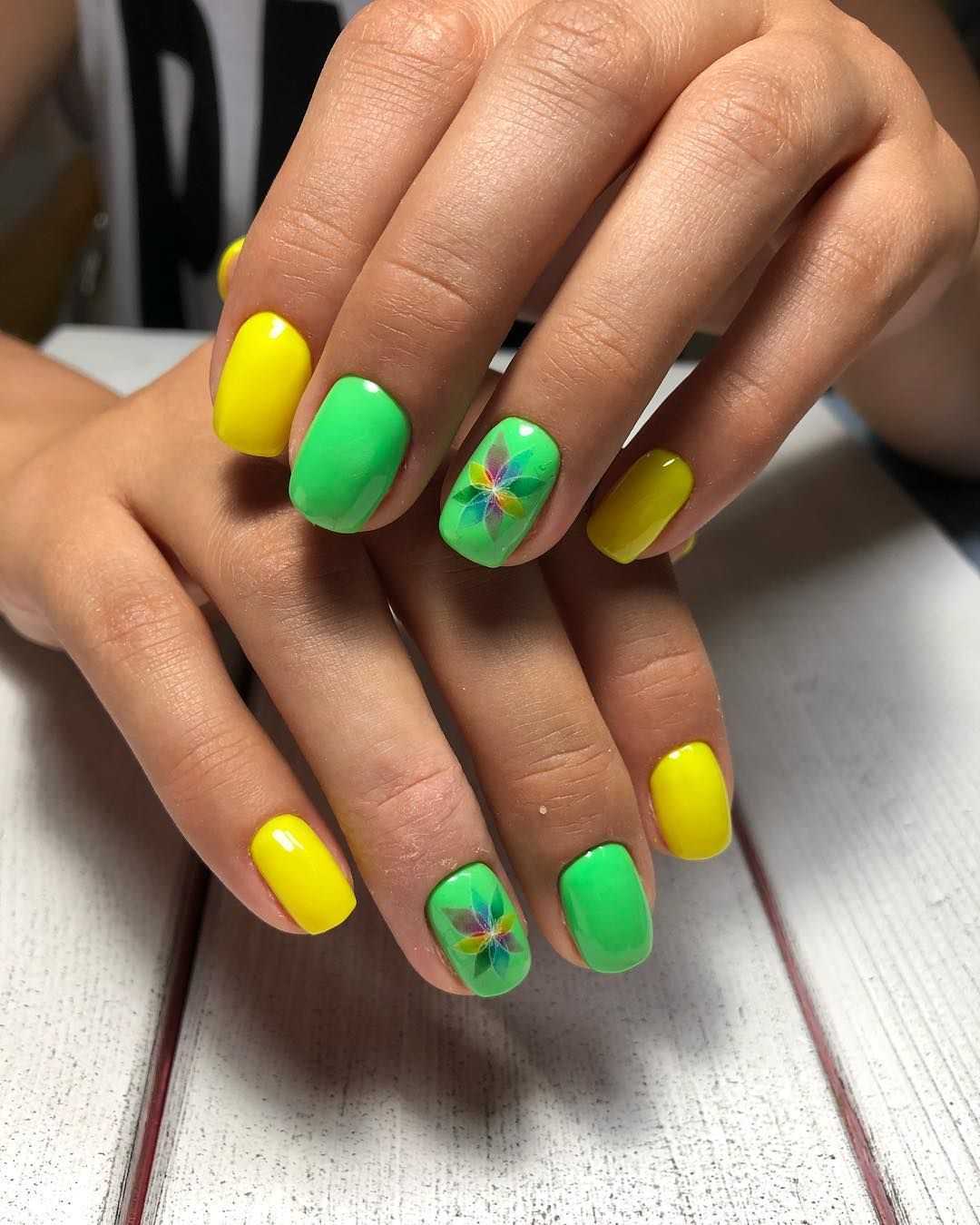 Что касается цветного маникюра, то матовость ему только к лицу. Даже такие сочные оттенки как лимонный, лайм, бирюзовый, оранжевый можно выполнить в матовой текстуре. В тренде однотонное покрытие цветными гель-лаками, разноцветный маникюр, маникюр «разные ручки».