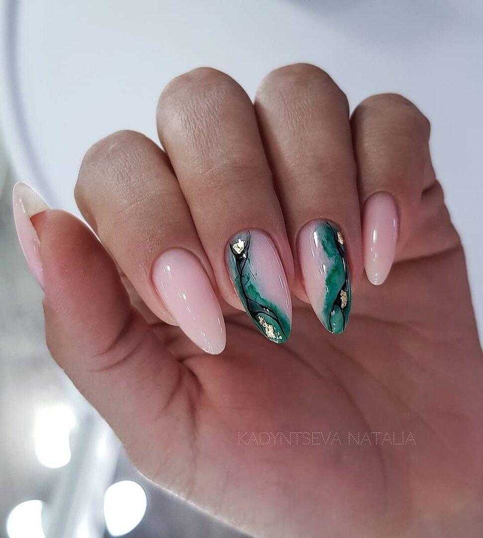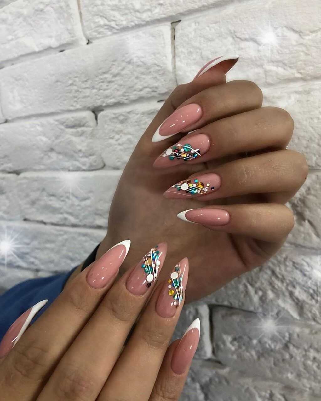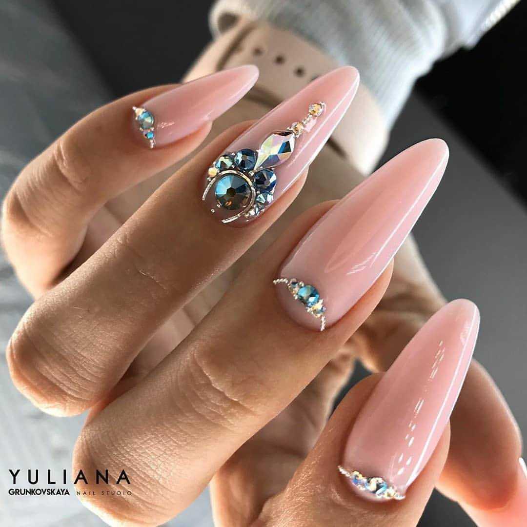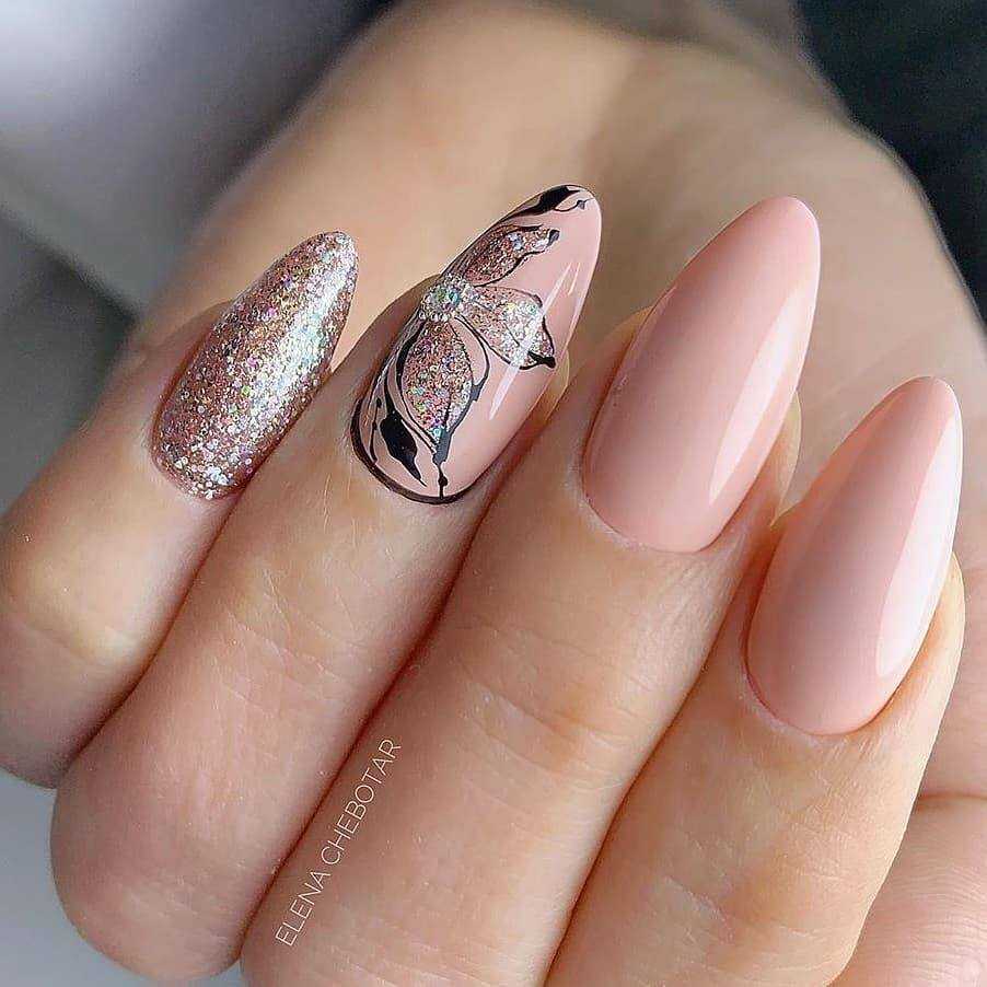 В этом сезоне отдавайте предпочтение миндалевидной форме ногтей, такая форма выглядит очень утончено и стильно. Дизайн ногтей на миндалевидную форму шикарно выглядит и в темных и в светлых оттенках, ярких и пастельных, с блестками, камнями и фольгой, с втиркой и наклейками.
