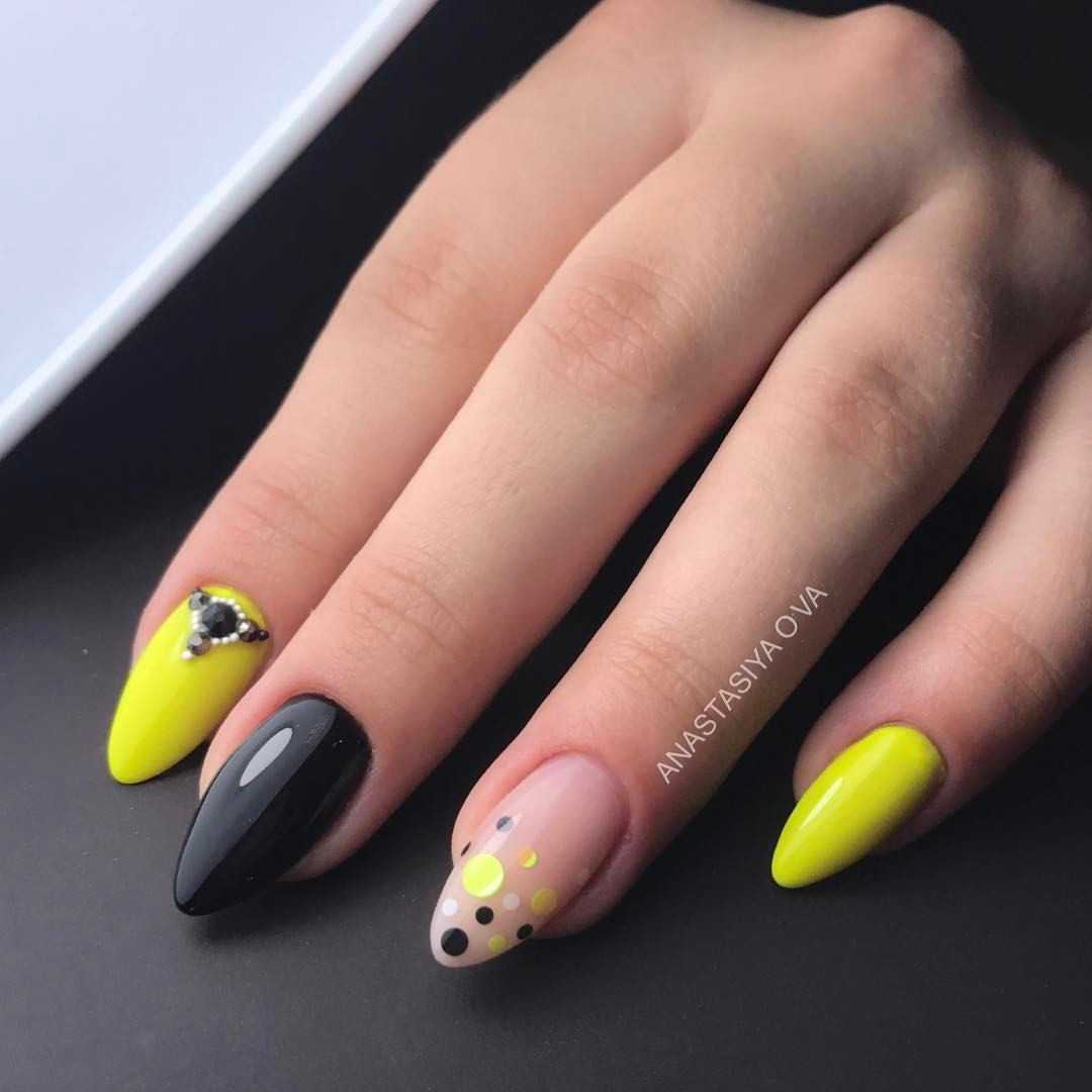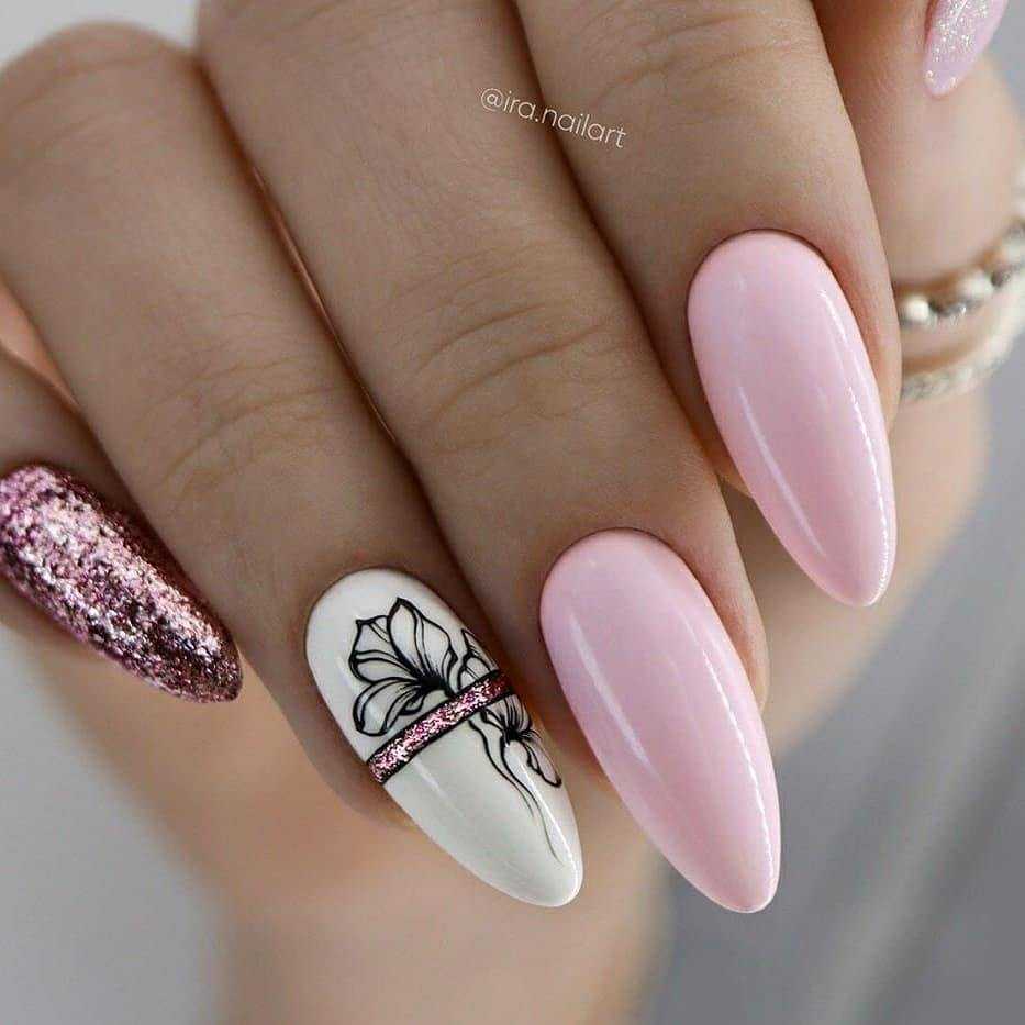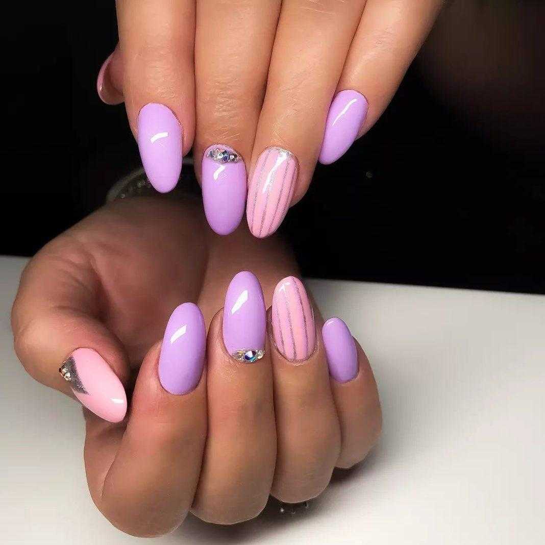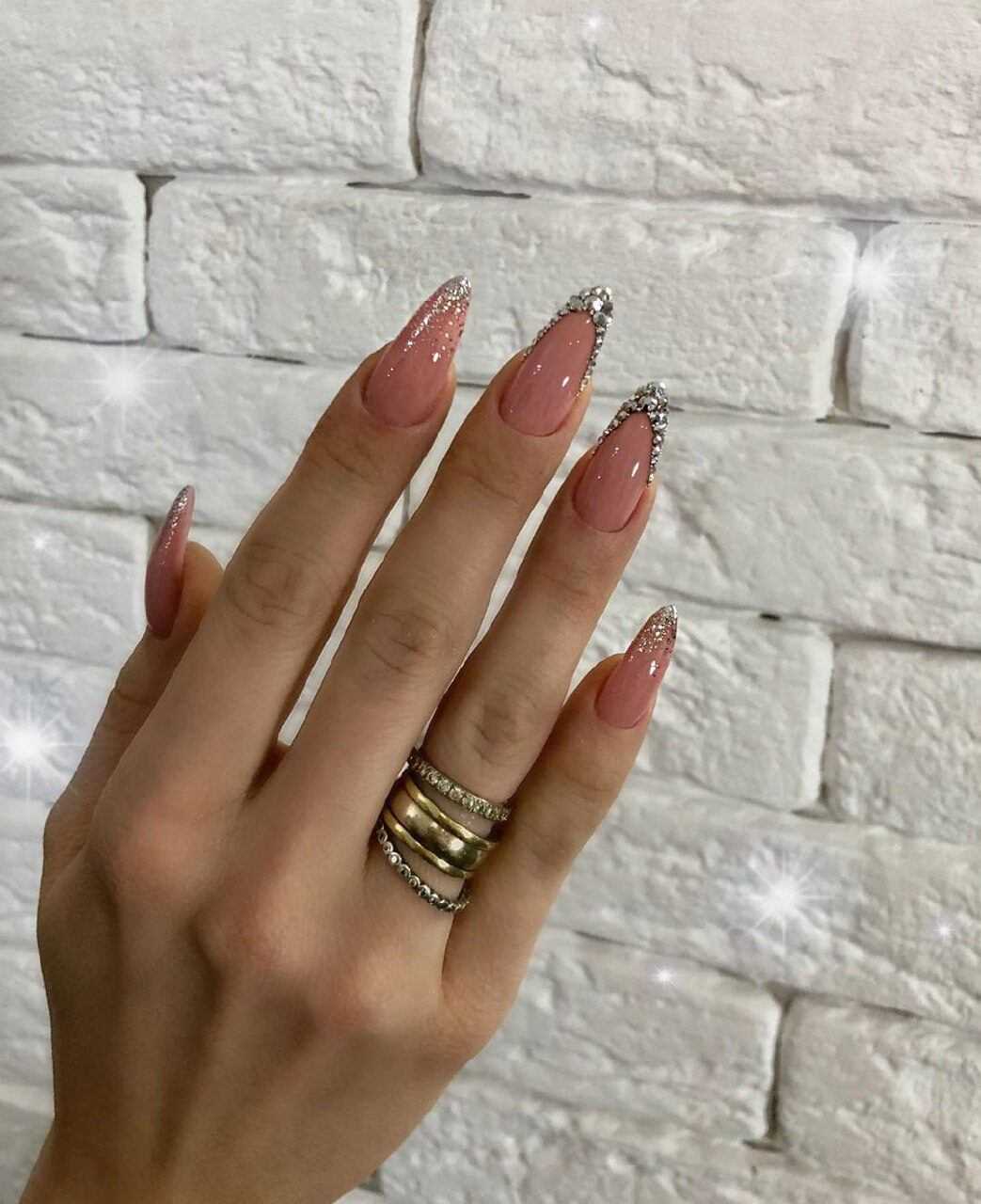 В этом сезоне отдавайте предпочтение миндалевидной форме ногтей, такая форма выглядит очень утончено и стильно. Дизайн ногтей на миндалевидную форму шикарно выглядит и в темных и в светлых оттенках, ярких и пастельных, с блестками, камнями и фольгой, с втиркой и наклейками.
