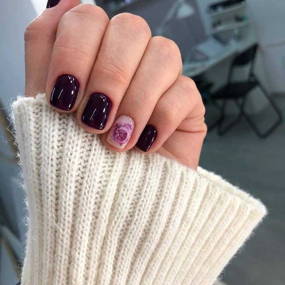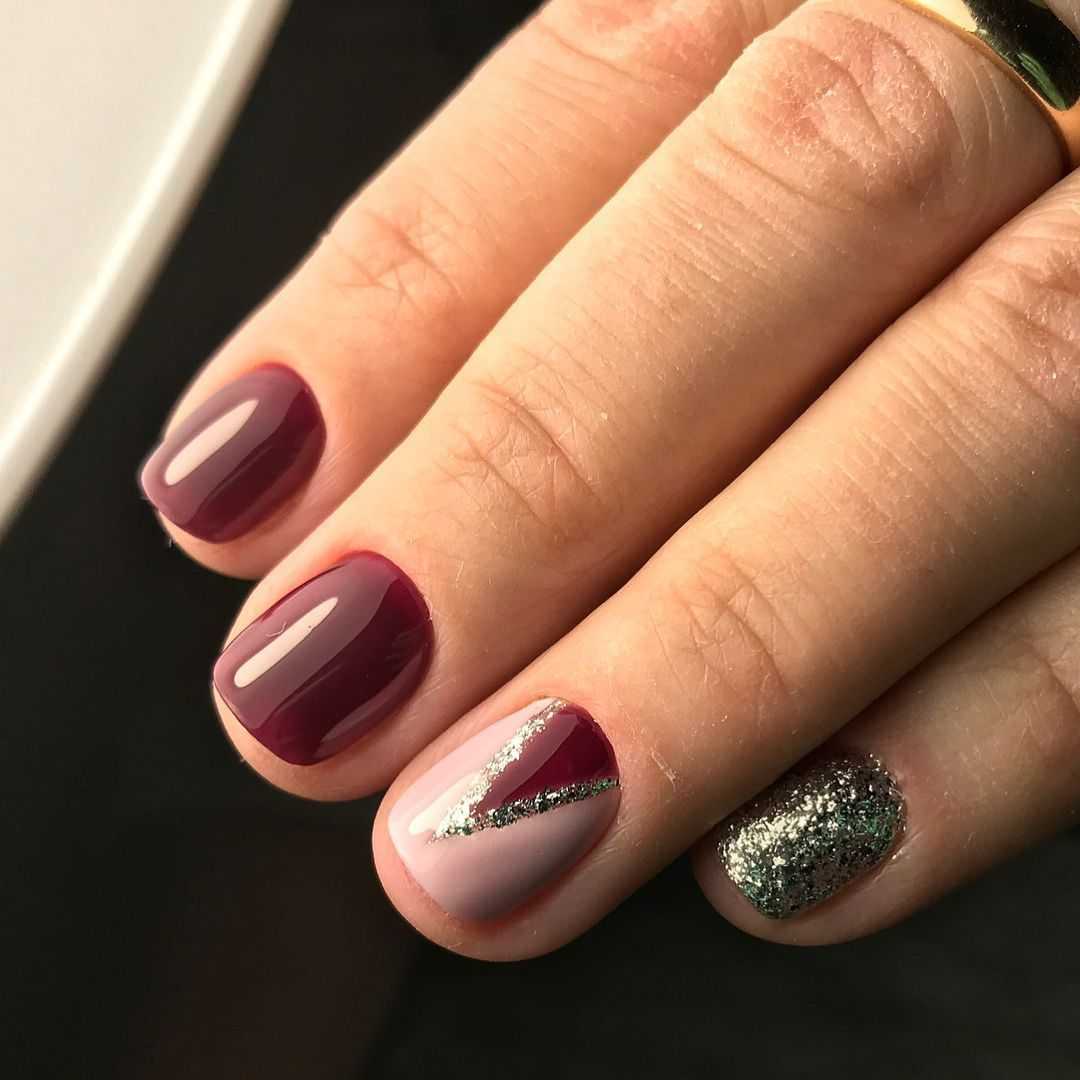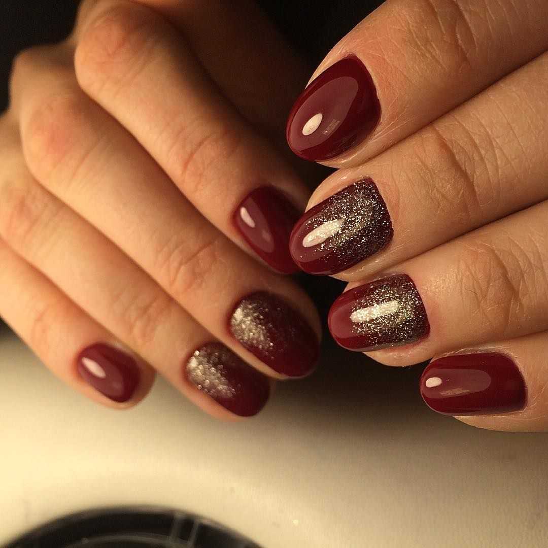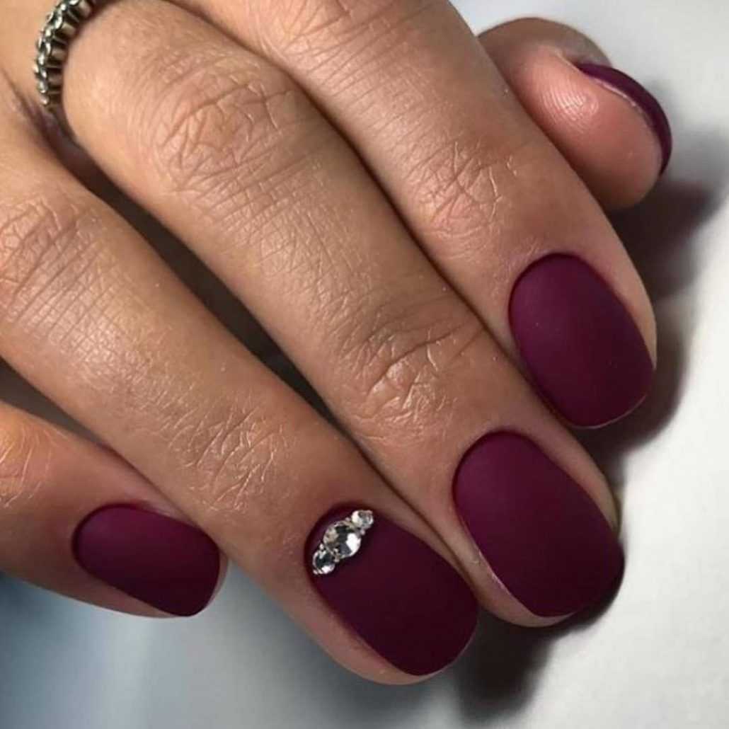 Бордовый цвет подчеркивает неровности и недостатки. Овальные и квадратные — лучшие формы для коротких ноготков. Также соблюдайте правило, что совсем не обязательно выбирать очень темный бордовый цвет, который визуально укорачивает ногти.