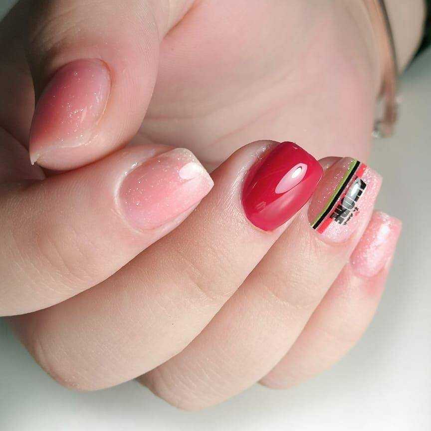 На ногтях средней длины уже можно играть с формой и быть смелее с рисунками. Короткие квадратные ногти также хорошо подойдут, если ногтевое ложе достаточно длинное. Форма миндаля средней длины зрительно удлинит рукоять, а бордовая расцветка добавит элегантности.