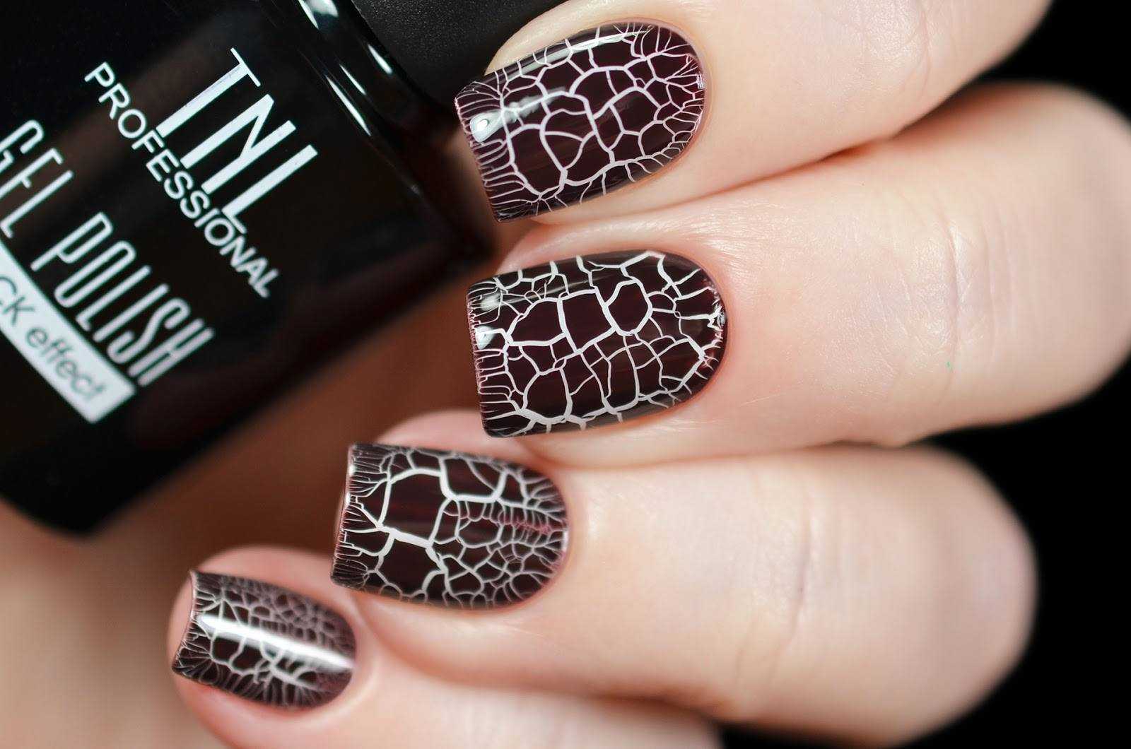 Одной из новинок декоративного дизайна ногтей нанесения гель лака – кракелюр. При нанесении кракелюр лака на поверхность ногтей, происходит как бы растрескивание покрываемой поверхности. Цветовая гамма исполнения этого маникюра не имеет границ от нежных, пастельных тонов до ярких оттенков. Принцип в том, что основной тон может быть любым, на него наносится специальный лак – крак, и который будет просвечиваться через образовавшиеся трещинки. Используется два вида кракелюр лаков — с мелким растрескиванием и крупным рисунком. Еще одно применение лака крак при создании змеиного маникюра. Такой эффект получится если кракелюрный лак нанести на основу черного цвета.
