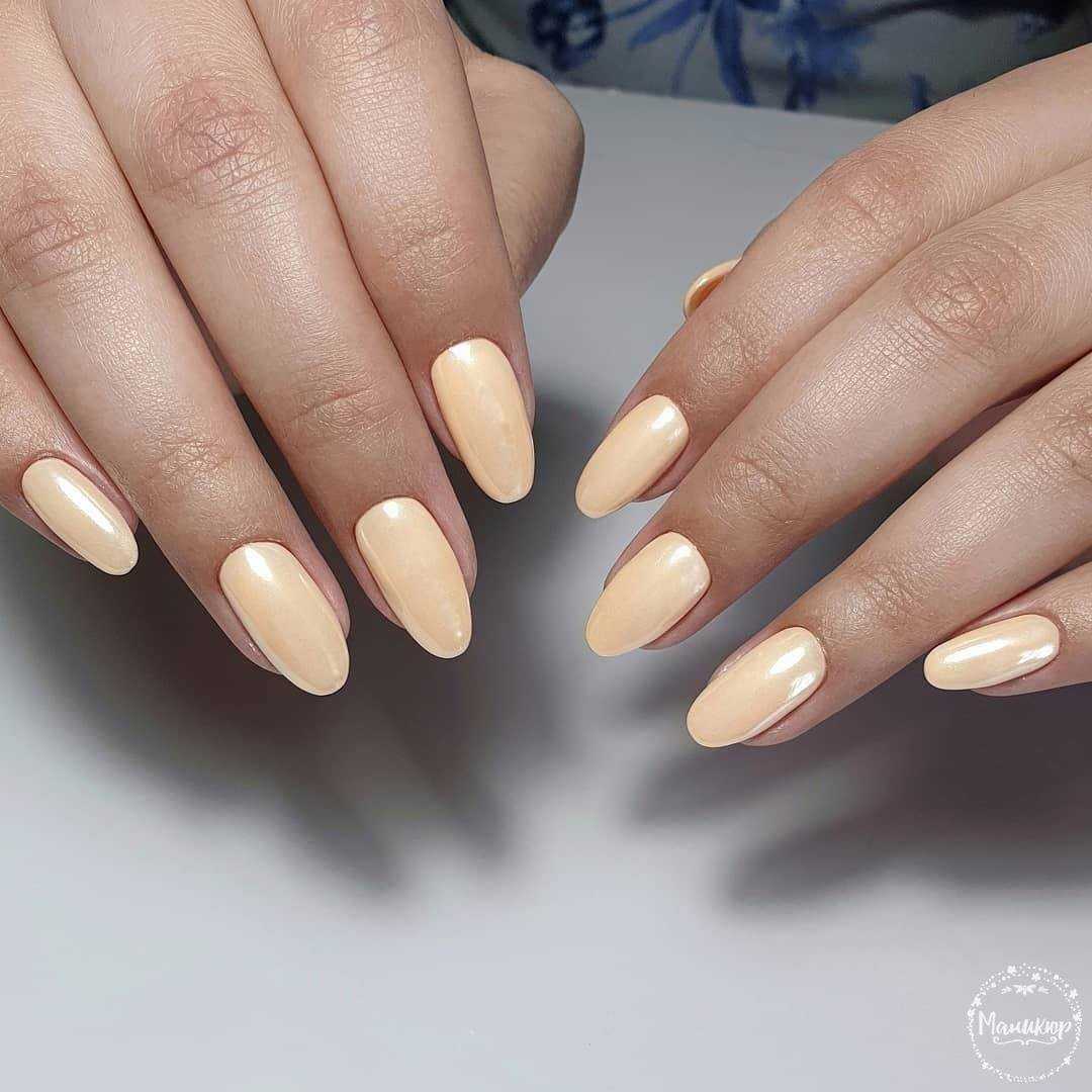 Нежный бежевый цвет придает ногтям естественный вид и в то же время смотрится оригинальнее, чем классический розовый.