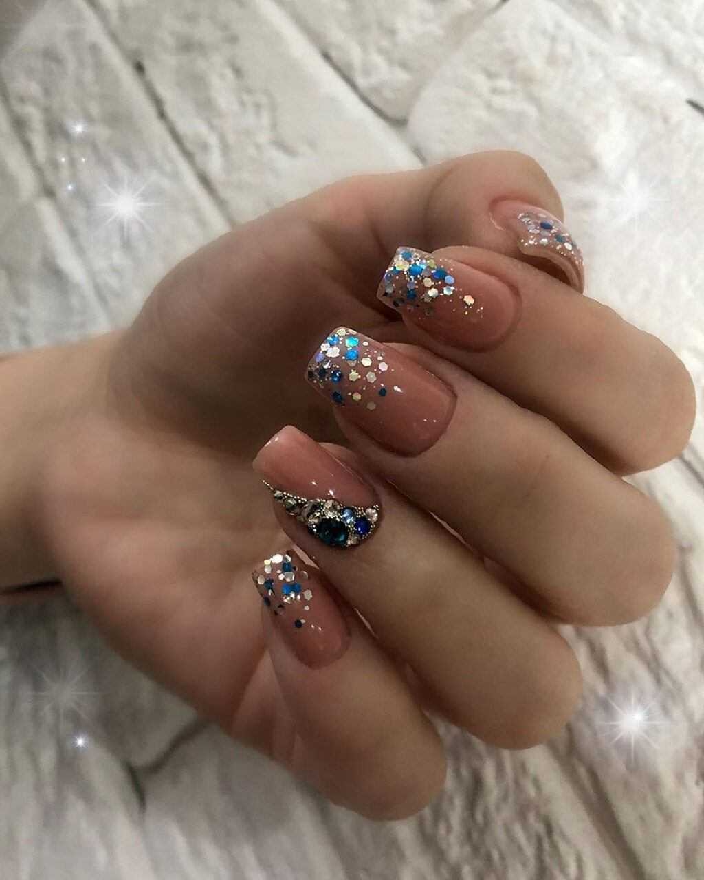 Для того, чтоб создать максимально нежный и женственный бежевый маникюр, необходимо выполнить его в сочетании с голубым оттенком. В 2020 году можно выполнить такой маникюр совершенно в любой технике, с роскошными цветочными узорами, рисунками забавных зверей, дополнить дизайн стразами или применить втирку. Такой легкий и гармоничный маникюр будет смотреться очень интересно и привлекательно не только в повседневном применении, но и для праздничного образа.