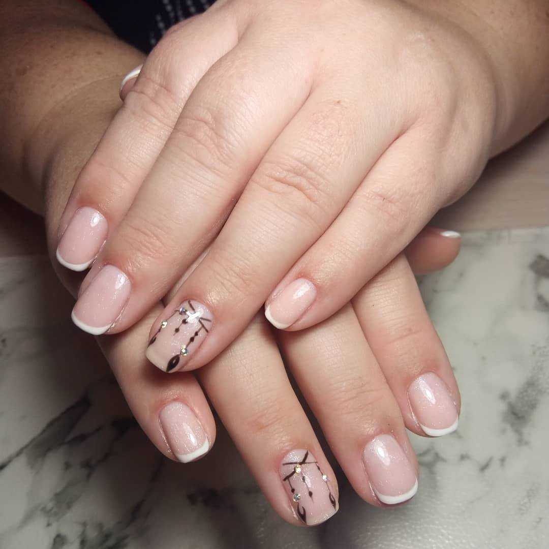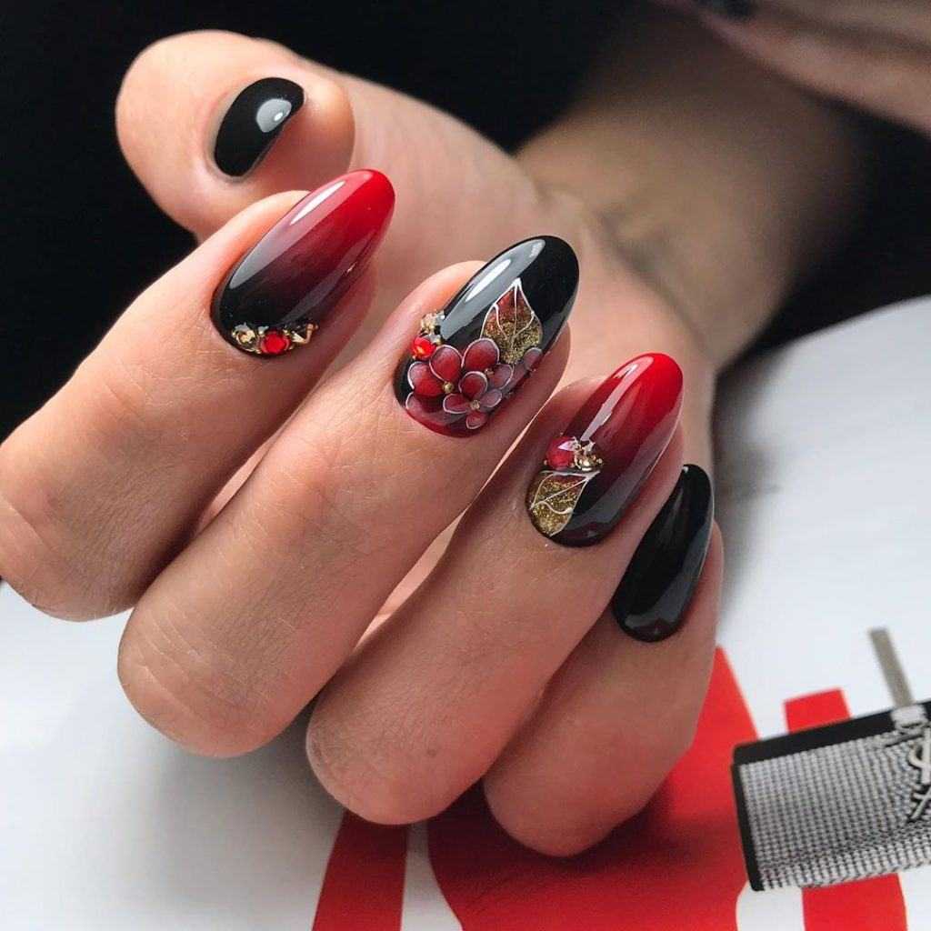 Любительницам лаконичного дизайна определенно понравится френч. В черном цвете он выглядит чуть более необычно, но все также стильно. Тем, кому по душе контрасты, присмотритесь к градиенту, а также цветочному рисунку. Они выглядят особенно нежно. Просто великолепно смотрится минимализм и геометрия в сочетании с черным однотонным покрытием. Ну и, конечно же, для коротких ногтей можно подобрать дизайн с надписями, небольшими фольгированными оттисками и прочим декором.