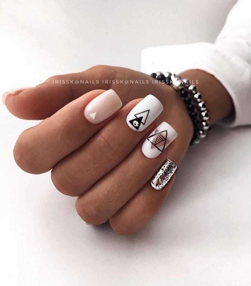 Для создания стильного повседневного маникюра сегодня можно смело использовать нестандартные геометрические рисунки. Минимализм и геометрия красиво дополнит светлые, темные, яркие, матовые или глянцевые ноготки. Для смелых и уверенных модниц дизайнеры предлагают в этом году для создания стильного повседневного маникюра использовать фольгу или разнообразную втирку. Такой маникюр выглядит одновременно ярко привлекательно, стильно и лаконично.