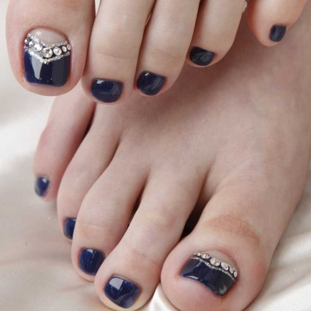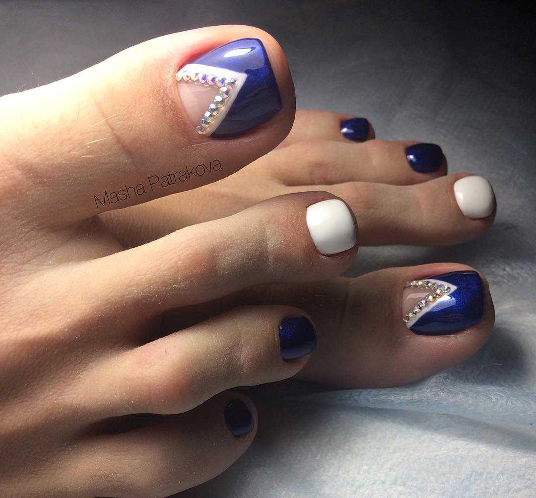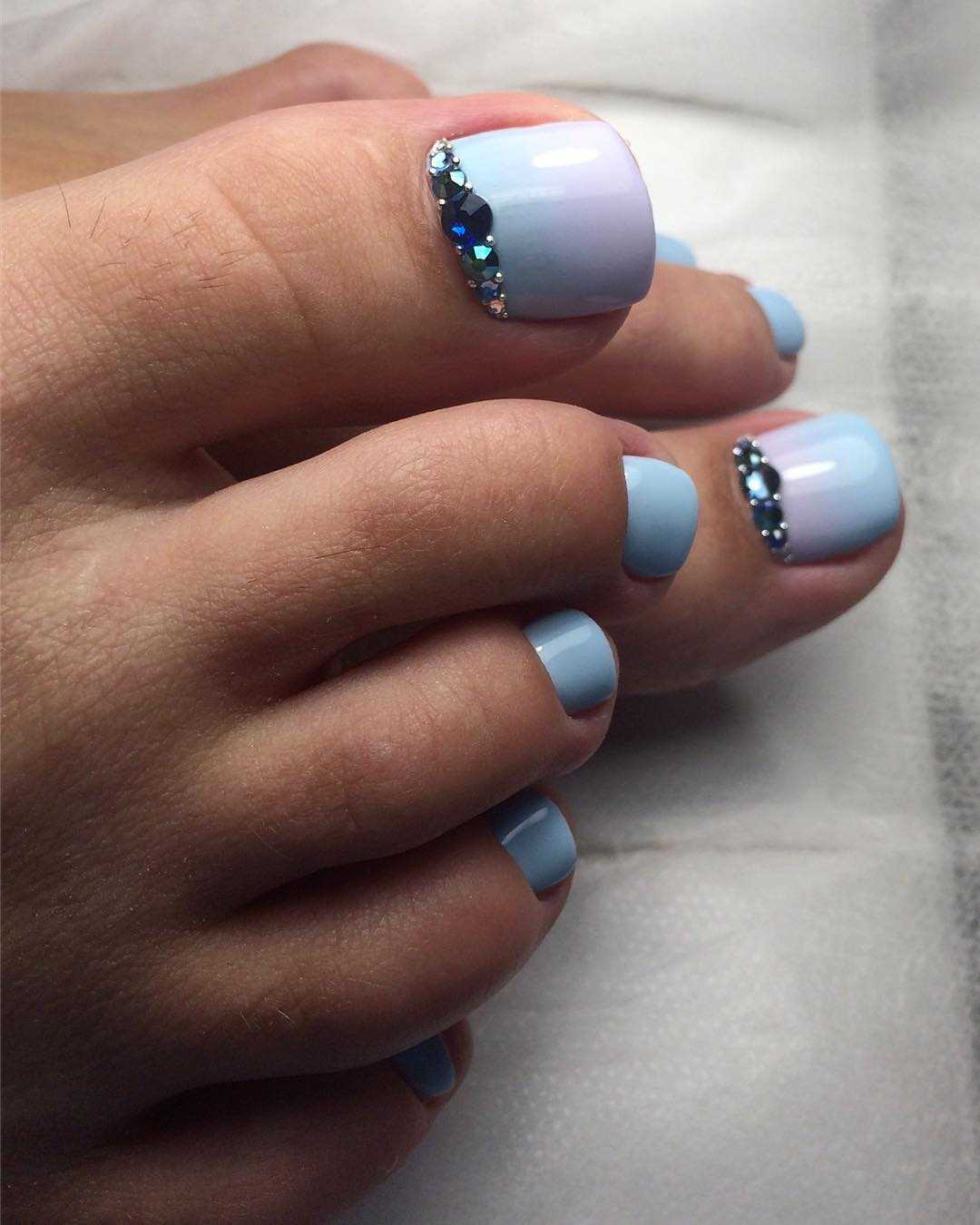 Педикюр с синим лаком уместен для любого случая и в любой обстановке. Разнообразие пронзительных оттенков подойдет для повседневной жизни и торжественных мероприятий. Более того, темно-синий оттенок является одним из классических вариантов для офисного стиля.
