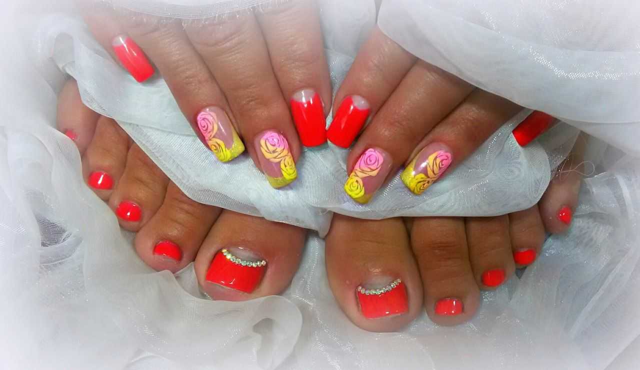 Обратите внимание на сочетание красного и белого цветов. На ногах, также, как и на руках, оно смотрится очень нежно и красиво