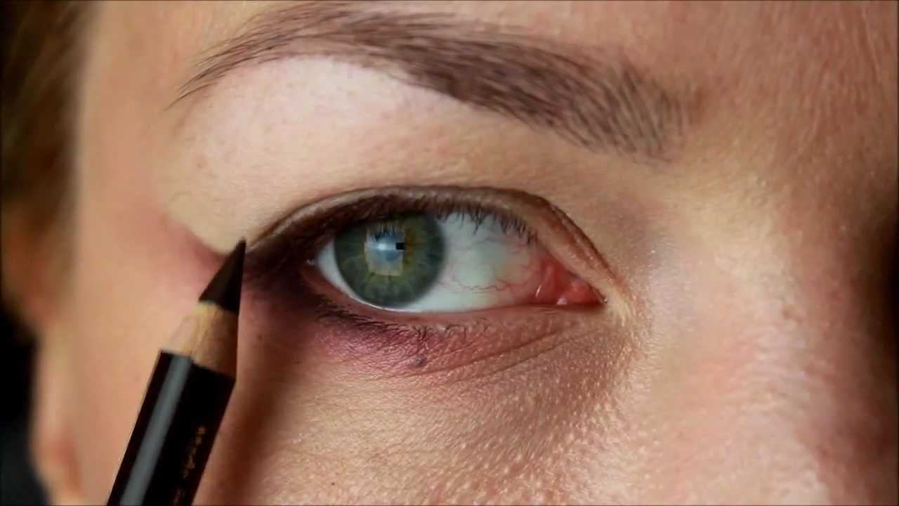 В качестве макияжа для нависшего века и увеличения небольших глаз отлично подойдет прорисовка линии нижних ресниц.