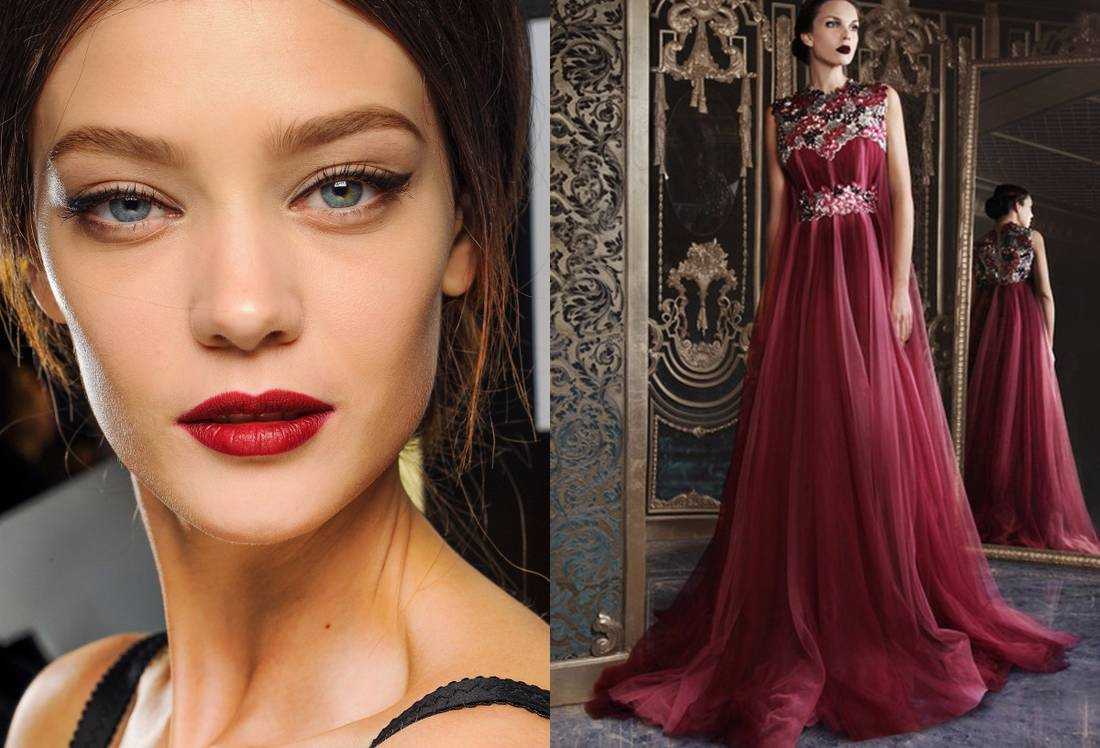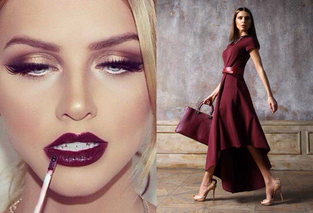 Бордо – благородный и аристократичный цвет. Если вы выбрали наряд цвета бордо, make up в броских оттенках или макияж в стиле нюд – не лучший вариант.