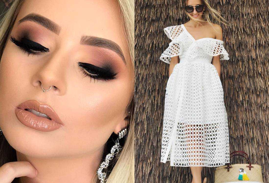Такое легкое по своему восприятие платье необходимо подчеркнуть таким же легким и женственным make up. Для создания образа выбирайте тени таких оттенков, как бежевый, голубоватый, сероватый, золотистый. На губы лучше всего нанести розоватый или бежеватый блеск.