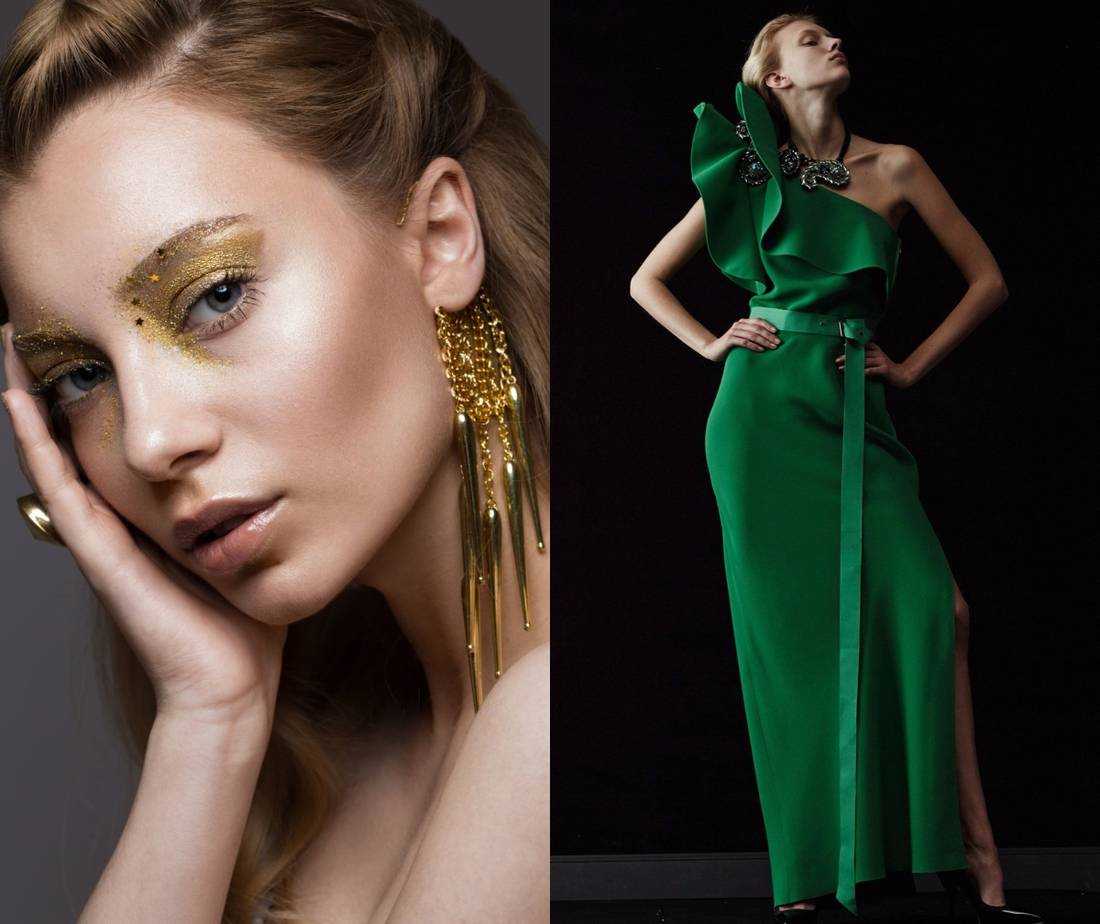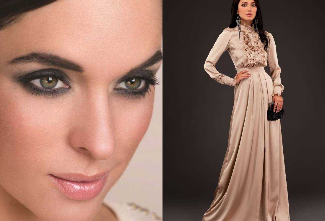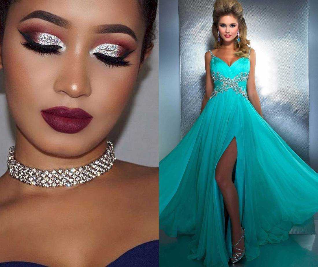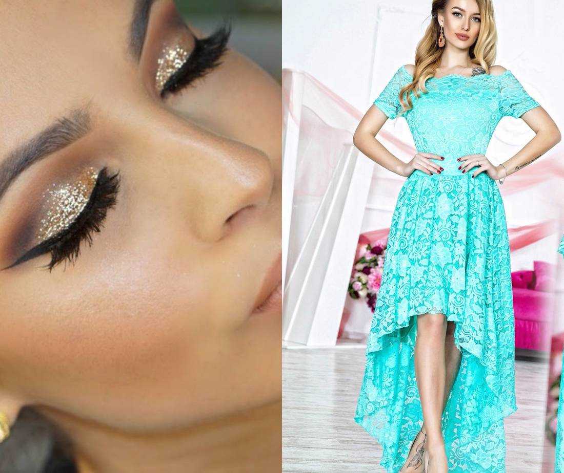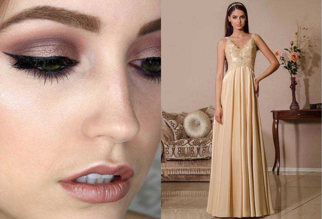 Варианты подходящего макияжа вы можете посмотреть на фото. Для платья с золотом требуется особый подход. Золотистые оттенки помогают выровнять тон лица, но при этом кожа на фоне блеска выглядит бледно. Стоит помнить, что легкий макияж под такой наряд не подойдет