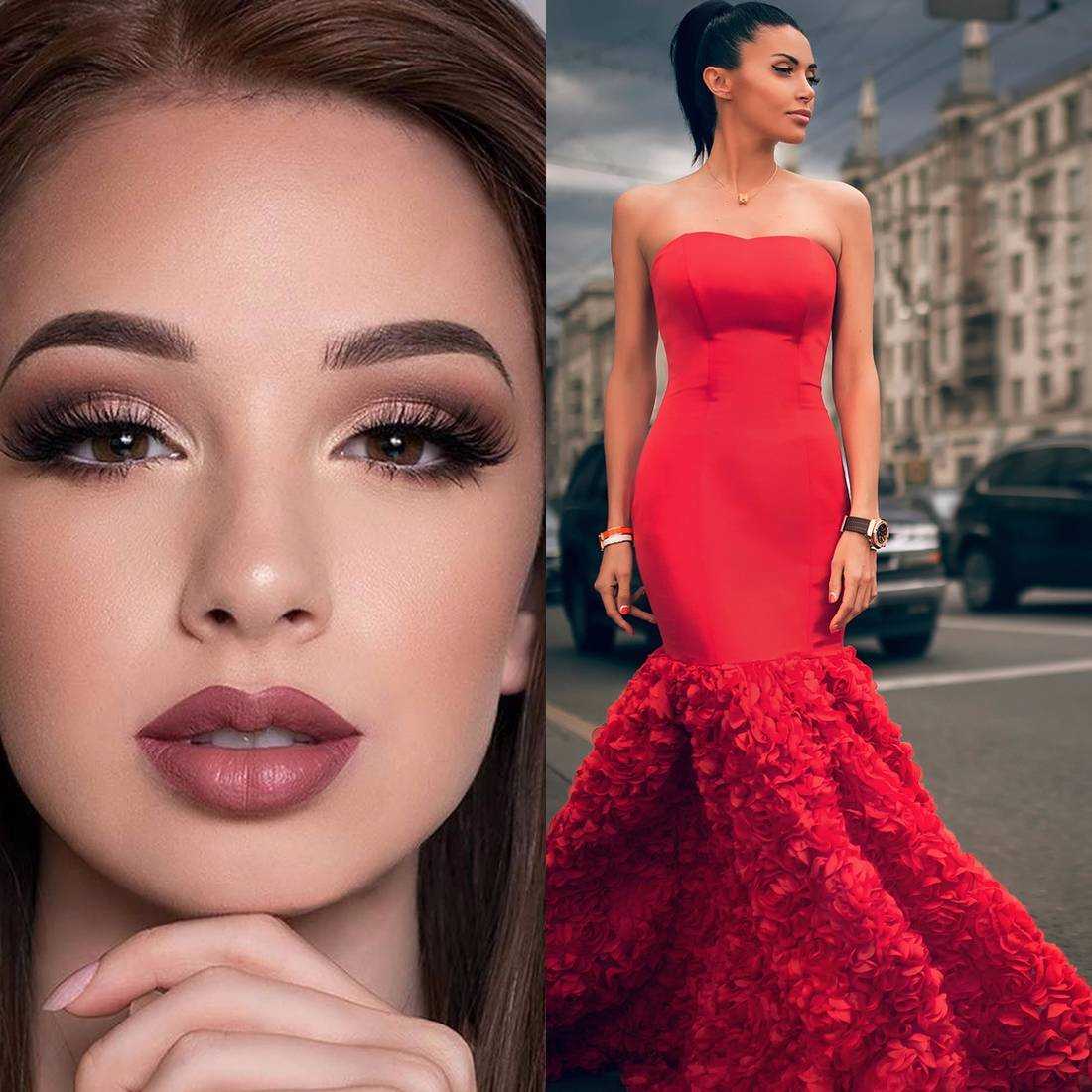 Основные критерии подбора макияжа под красное платье, этот экстравагантный и смелый наряд, – цветотип, оттенок одежды, уместность. Брюнетки и шатенки могут использовать яркий мейкап. Блондинкам и рыжим лучше выбрать более мягкие, приглушенные тона.