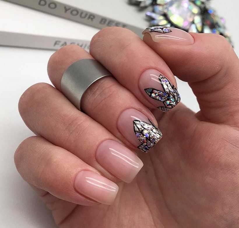 Также подойдут нежные ненавязчивые бледные тона с почти незаметным шиммером. В таких гель-лаках блестки можно увидеть только на солнце. Их присутствие только усиливает бликовое покрытие. Они добавляют эффект мягкого перелива и естественно смотрятся на руках.