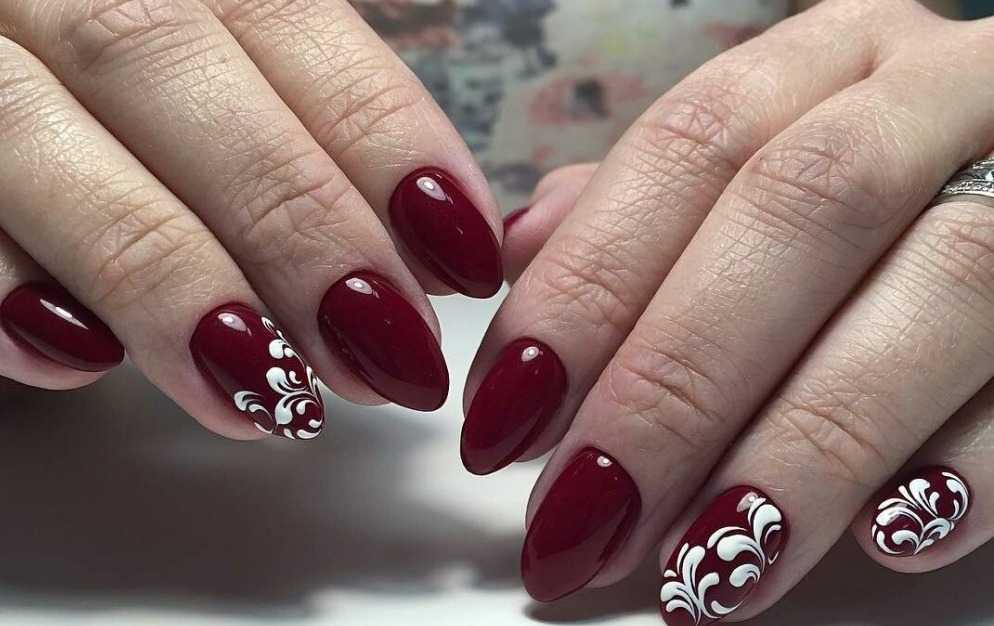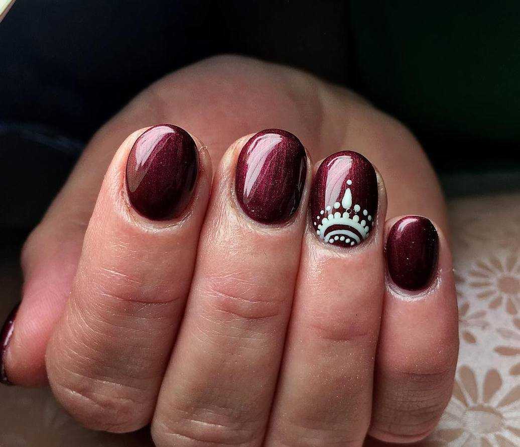 С красивым цветом марсала можно всячески экспериментировать на ногтях, например, чтобы однотонное покрытие не наскучило, сделайте несложный декор или прорисовку.