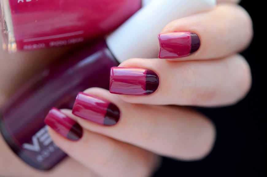 - Отделенную часть на кончике ногтя закрашиваем цветом марсала.