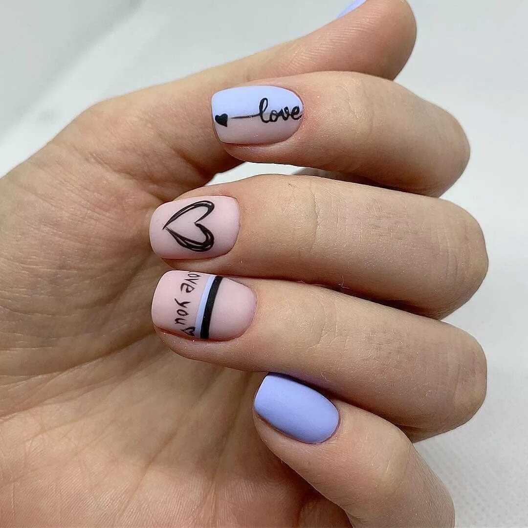 Такой дизайн всегда смотрится утонченно, изящно и очень уместно. Минималистичные лица, цветочные мотивы, надписи — такой маникюр будет актуален в 2021 учебном году. Выбирая базовый цвет, лучше отдать предпочтение нежной нейтральной палитре. Эти идеи маникюра не нуждаются в ярком декорационном сопровождении.