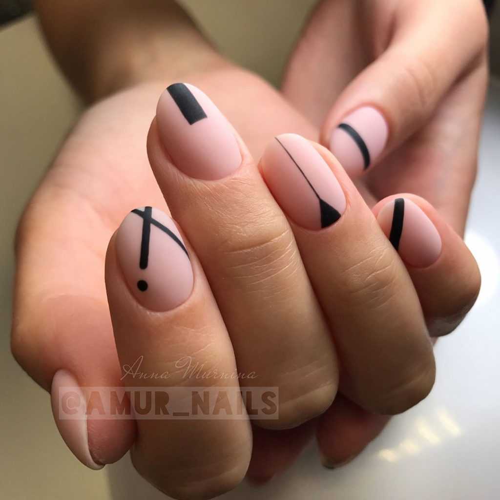 - используйте геометрические узоры – рисунки с геометрией или животными в стиле оригами великолепно выглядит в сочетании с матовым нюдом. Это идеальный вариант для девушек, предпочитающих стиль минимализм.