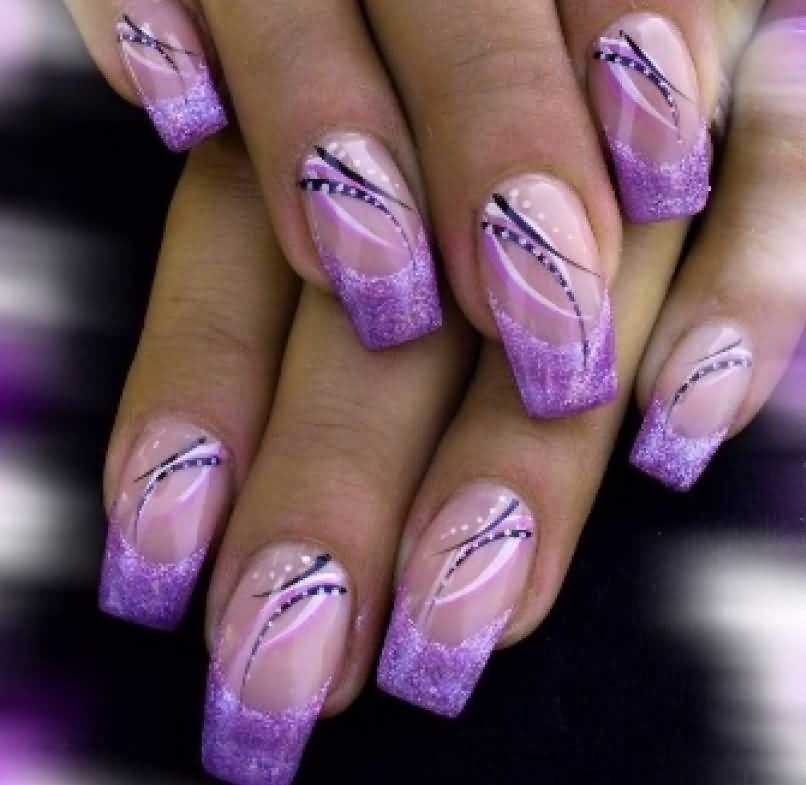 Французский nail art с темно-фиолетовым краем ногтевой пластины