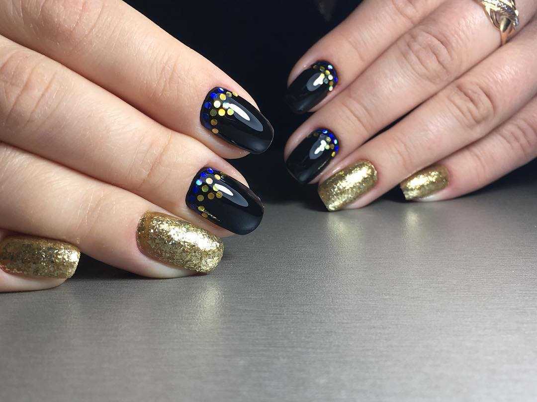 Слева — вариант на день рождения, справа — золотистые бульонки на черном лаке