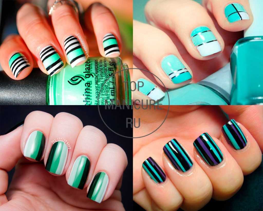 Идей дизайна, где фигурируют черный цвет и ментоловый, множество. Этим сочетанием можно воспользоваться для аккуратного и неброского нейл-арта, также черно-мятный дуэт можно использовать для дерзкого и яркого дизайна.