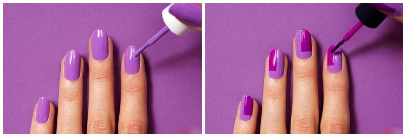 В случае, если вы выбираете горизонтальное омбре — с переходом от светлого оттенка на мизинце к темному на большом пальце (или наоборот), дополнительные инструменты вам и вовсе не понадобятся.