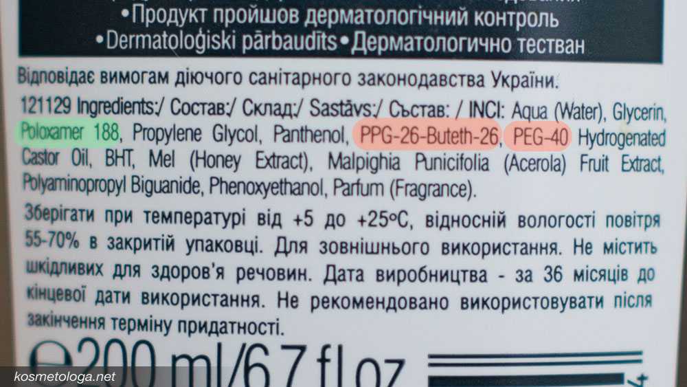 Сначала я обнаружила в составе полоксамер (Poloxamer 188) и очень обрадовалась: неужели мне досталась настоящая мицеллярная вода, которую можно не смывать?! Но изучив остальные компоненты я тут же расстроилась — в составе были пресловутые ПЭГи, наличие которых говорит о том, что такую мицеллярку смывать необходимо.