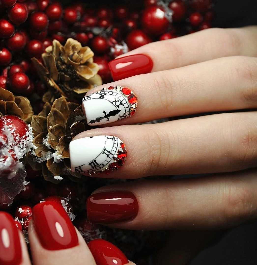 - часы на ногтях. Не забыть о полуночном бое курантов вам поможет очень красивый неил-арт с часами;