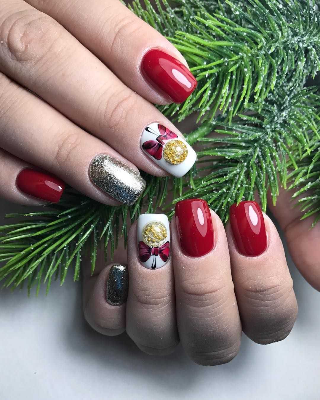 Новогодний дизайн ногтей с рисунком